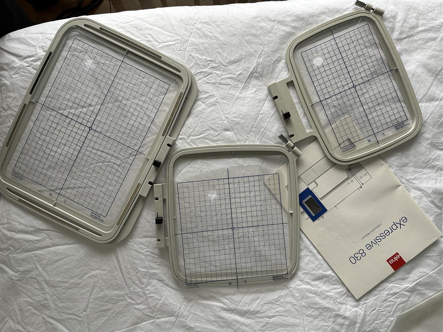 The machine is basically new with all items it was purchased with included. (Manuals, Hoops, Replacement parts and tools).