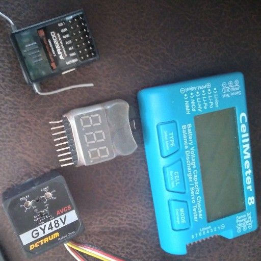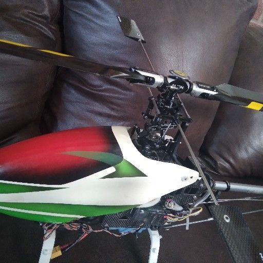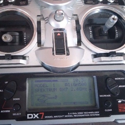 500 align fb heli .rtf with dx7 spectrum transmitter. And 2 spectrum are 700 and AR 6200 receiver s .plus lipo batt 3300mah. Batt meter .servo tester .and extra gyro .all in very good cond