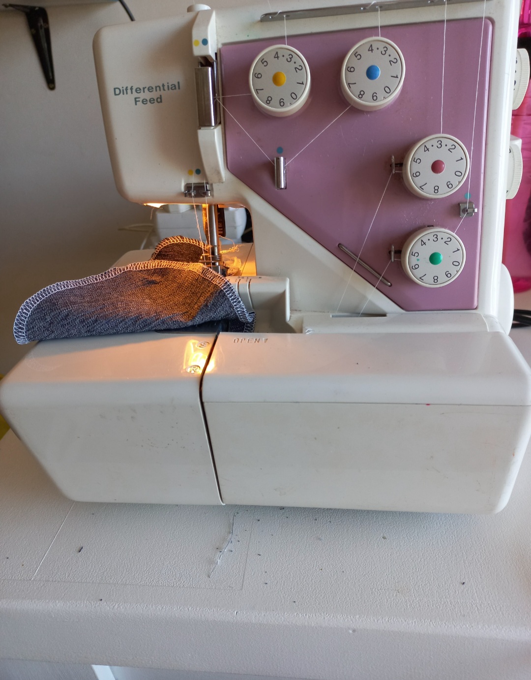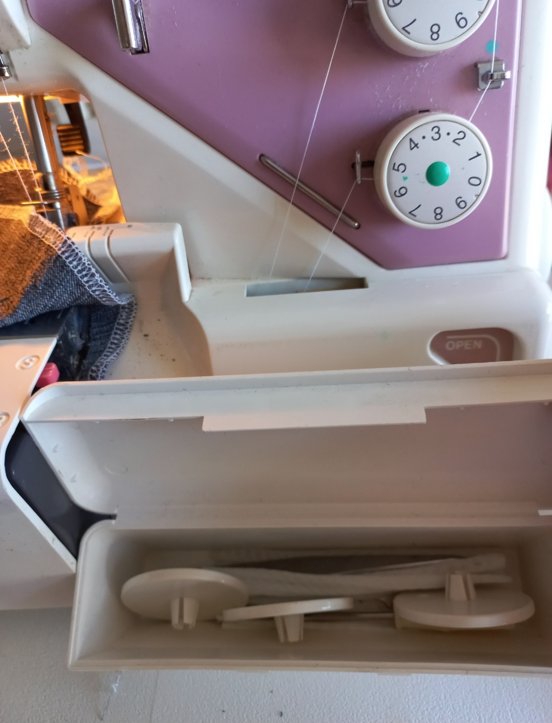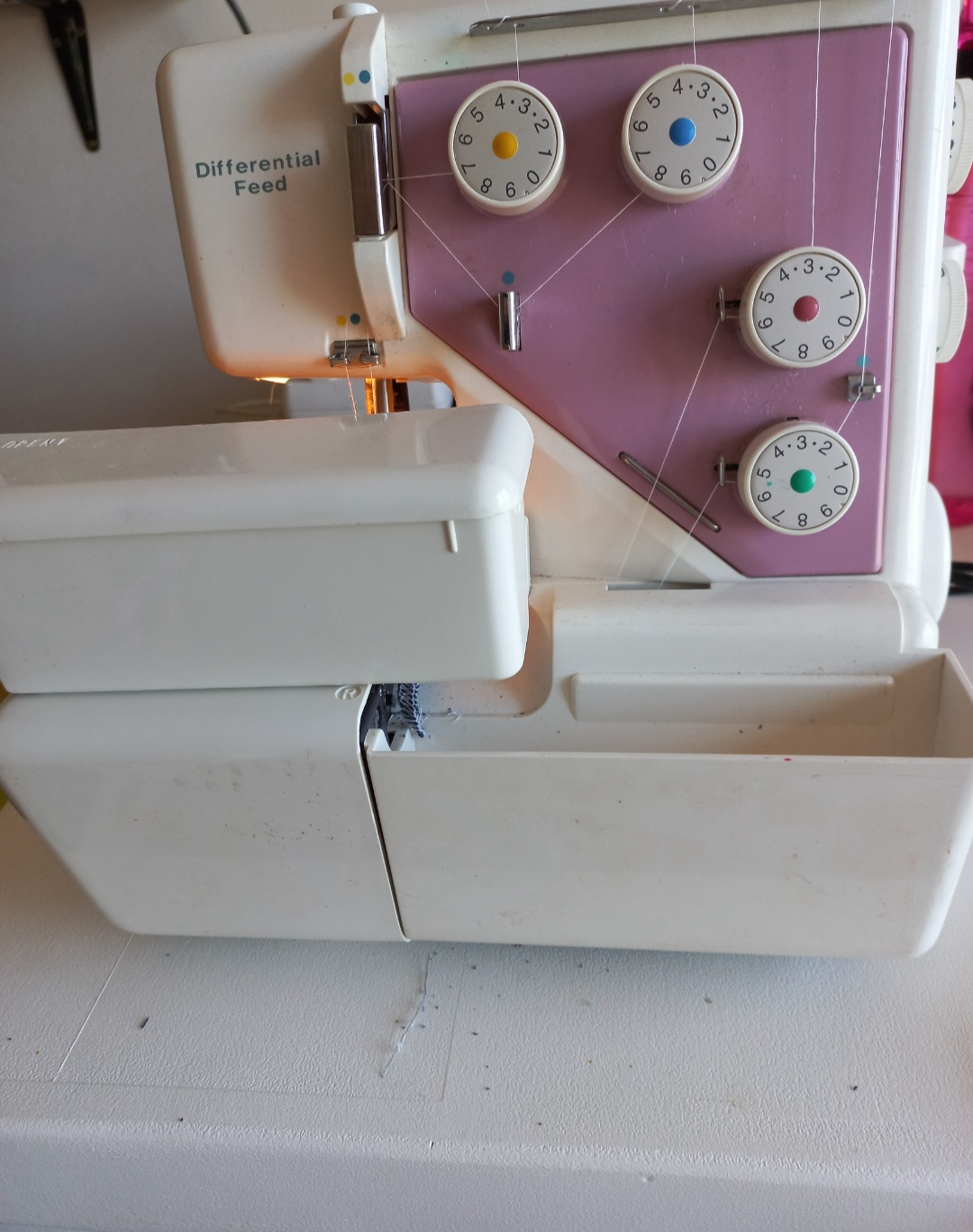 Overlocker + tools + waste bowl + electric foot