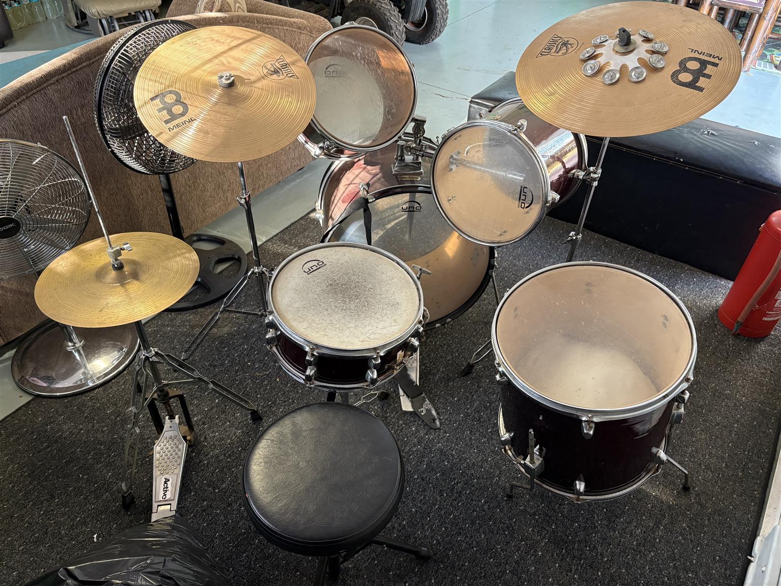 Drum set with snare 2xtoms bass 2 x menial cymbals hi hat and seat