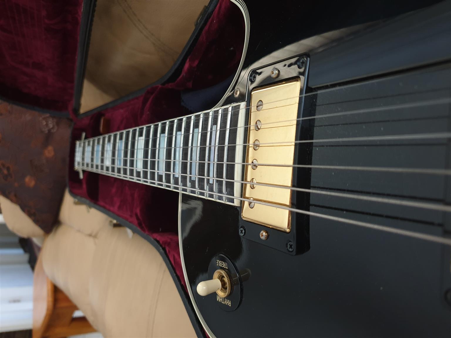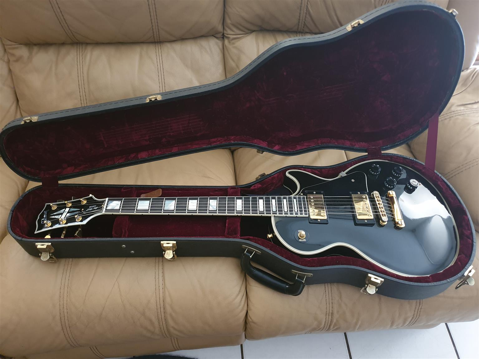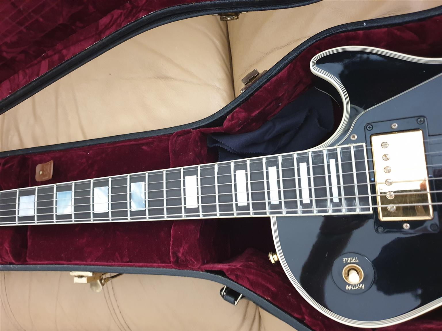 Black 2004 Gibson Custom Shop with Gold plated Hardware, hardcase and Gibson Shoulder Strap in excellent condition.