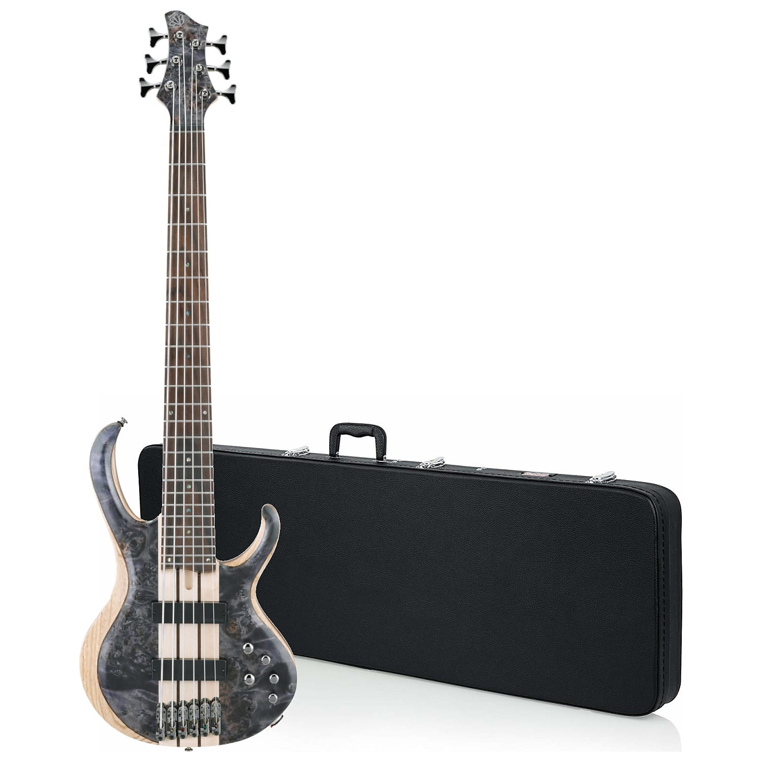 The BTB Standard series BTB846 from Ibanez is a 6-string electric bass guitar featuring a neck-trough design, a poplar burl top, an ash/mahogany wing body, a jatoba fingerboard, and a deep twilight low gloss finish. The deep double-cutaway body allows for unencumbered access to the upper regions of the fingerboard, ensuring solid playability. The maple/walnut BTB6 neck features an extra-long 35" scale which provides a tight, even tension with no flopping on the low end, and added sustain on the high strings. Other features include two bridge and neck Bartolini BH2 humbucker pickups, a 3-band EQ with mid-frequency switch, a Mono-rail V bridge, and cosmo black hardware.