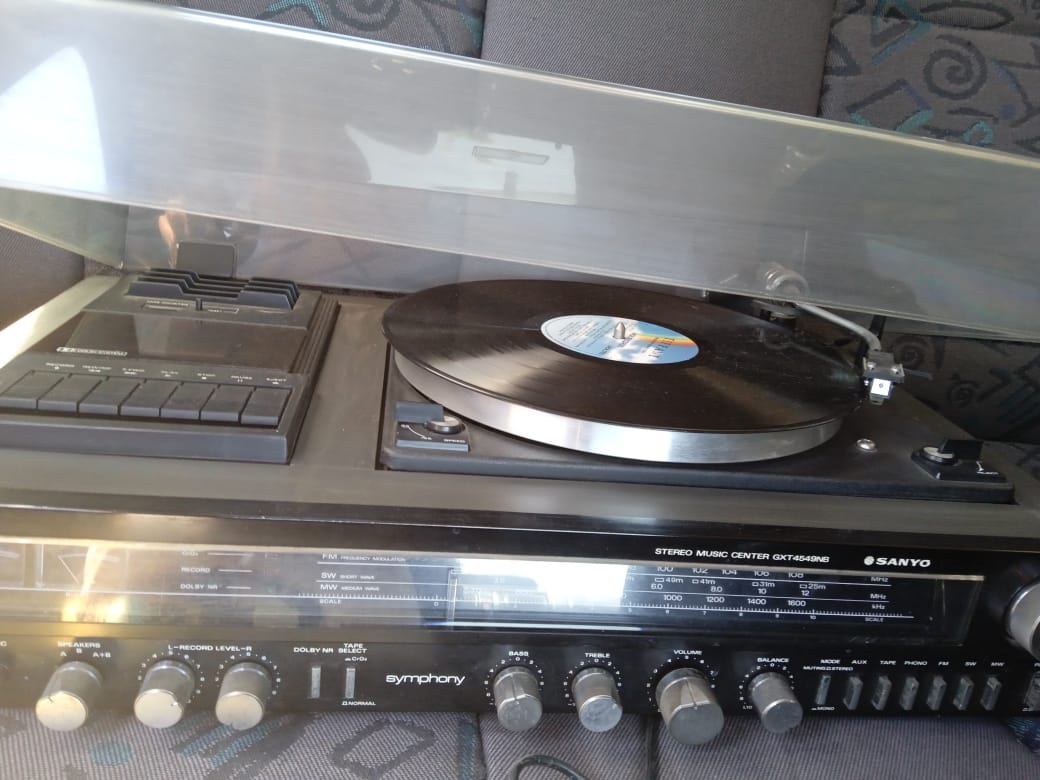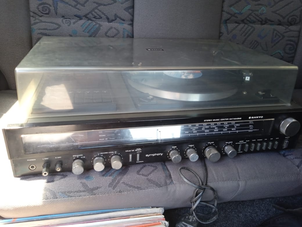 Casset and tape player with more then 40 casset and tapes with 2 box speakers. More details: