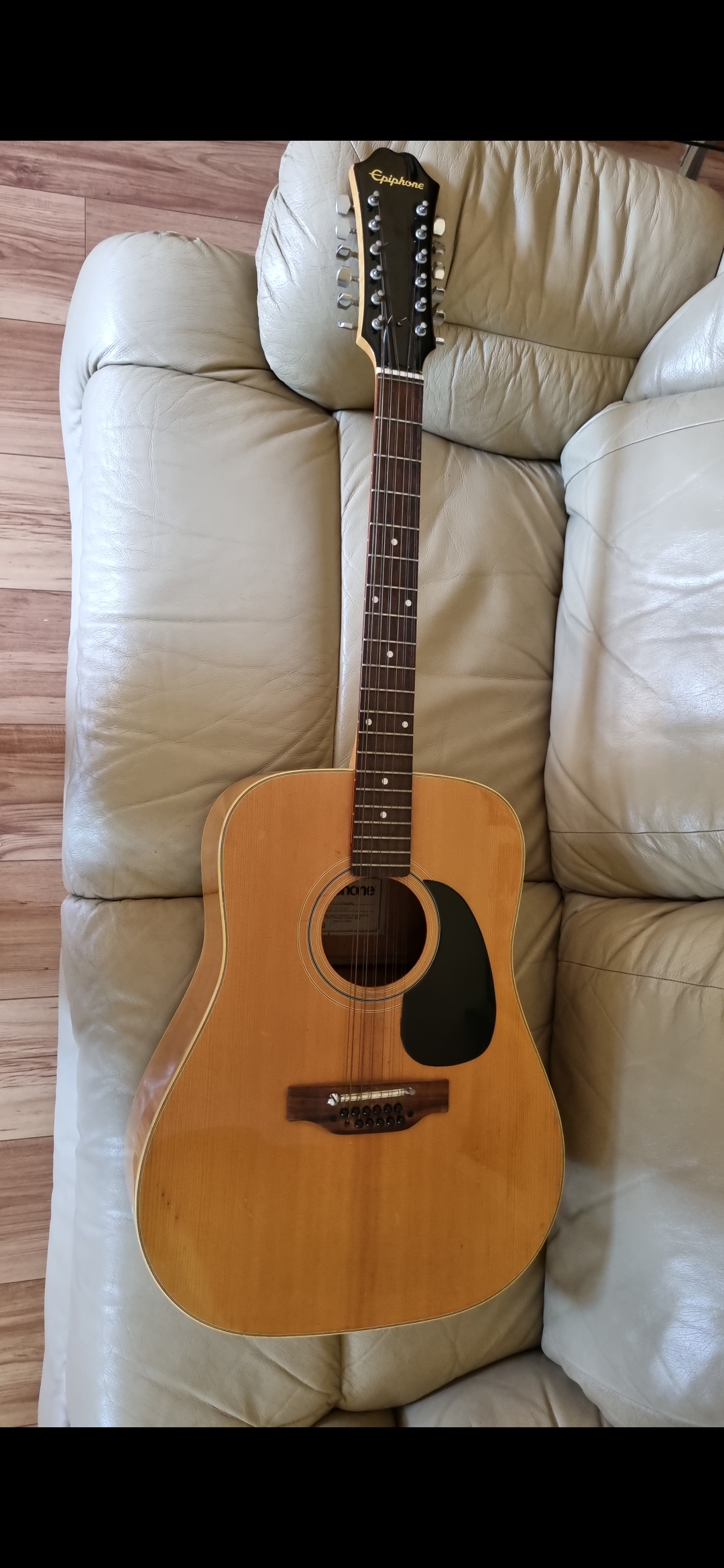 I've been the proud owner of this great Epiphone 12 string guitar simce 1991. It's is a fantastic guitar and it sounds great! I've maintained it very well and it's adjustable bridge helps to get the best action possible. And its action is great! They typically sell 2nd hand for around R3500, my asking price is only R2100, but I'll negotiate on that a little. Phone me to discuss!