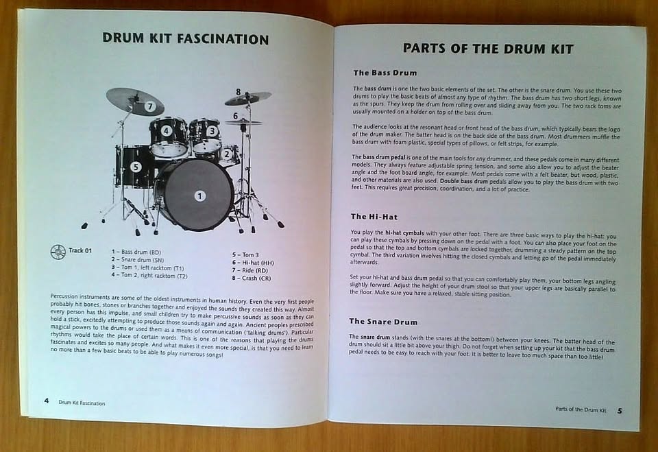 The drums beginners guide including cd. The complete quick guide. The most important rhythms, grooves, fill-ins & patterns. Basics & practice exercises. Drum kit fascination. Parts of the drums. Notation. Rhythm exercise. The groove. Accompanying melodies. Fills. Patterns. Paradiddle. Double stroke rolls and the press roll. Style overview. Afterword. Contact Michael 0671205901view more or Whatsapp. I’m in Newlands in the Westrand JHB. Postnet courier extra R100. Pepstores paxi extra R50.