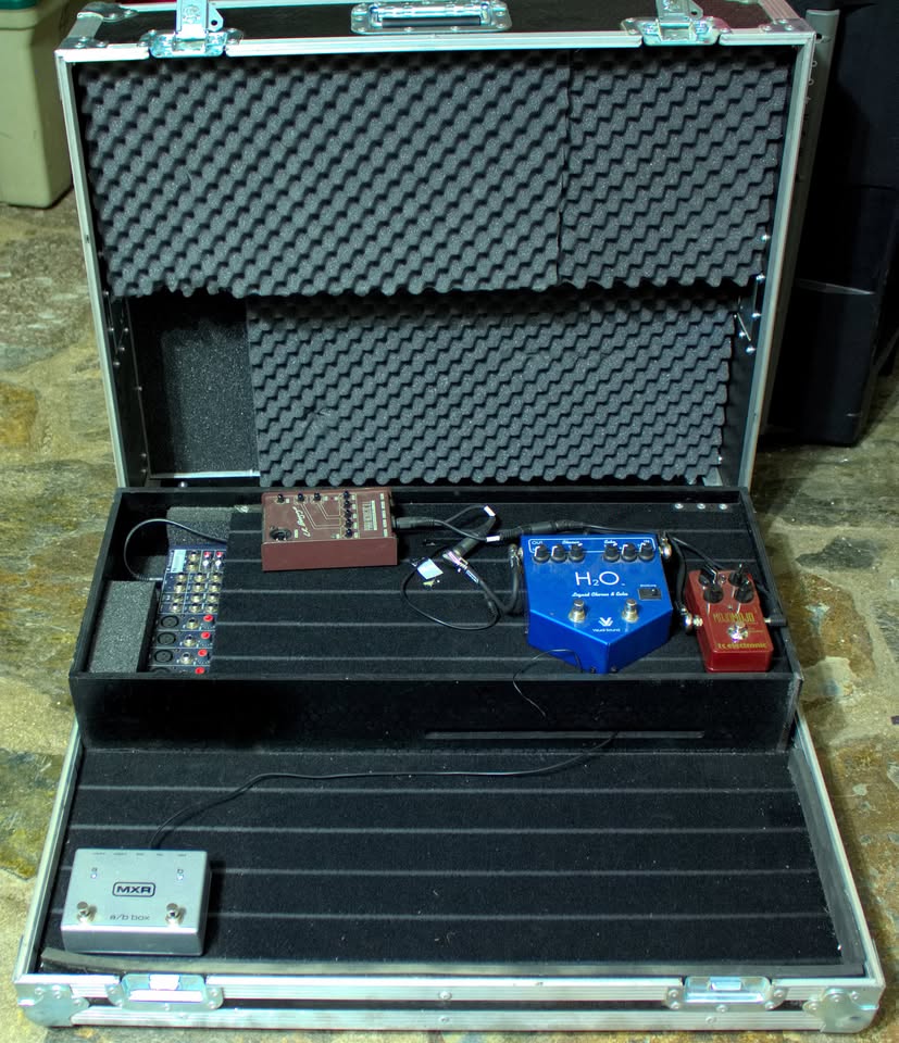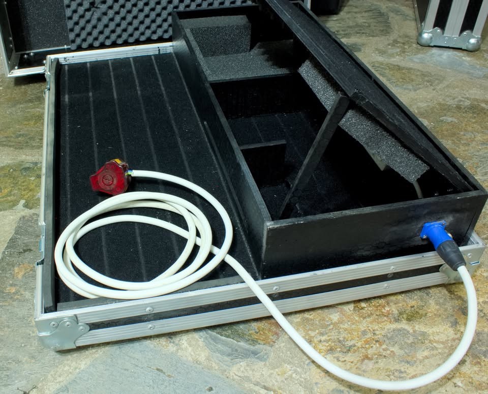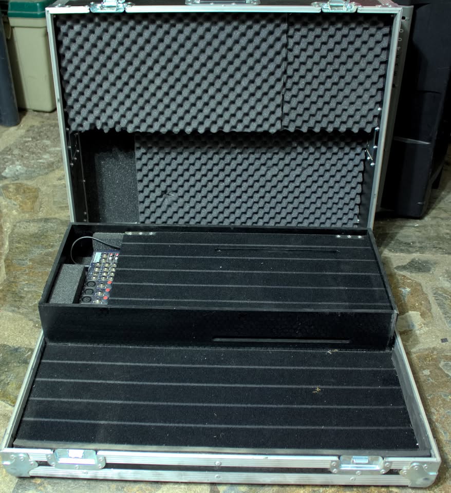 This case is at the Fourways Guitar Centre to view! So... this pedal case started life in my imagination. I needed a case big enough to hold my RC 300 loop station, other pedals and a small mixer. The signal routing included 3 parallel chains (one acoustic signal, one distorted signal and the loop station signal) feeding a mixer to pre-mix everything before sending to the main mix. So I commissioned a design from Stage Audio Works in Midrand. And they produced a wonderful unit. However I didn't count on it being as heavy as it is, nor that it wouldn't fit very well into my (small) car. For those reasons and the fact that my style has changed I am sadly selling this case. The case is extremely well made and has two sections to distribute multiple pedals but still have them accessible. The first section at front is lower, and the second section at the back has two levels. The lower level can be used for a mixer, pedalboard power supply etc. The second level "floor" is for your pedals and is on hinges so it can lift up to access the lower level. The case includes a wooden baton to hold up the second layer "floor", a neutrik powerCON connector, a multi-plug, and the flooring has material glued on to velcro your pedals. The "roof" of the case is soft and designed to hold pedals in place on the front as well back levels. Pictures should tell you the full story. If you are athletic (or have roadies to help out), have enough space in your car, and are looking for an extremely robust way of housing a mosaic of guitar pedals then this case could really suit you. Dimensions are 760w x 625 d x 272h and dry weight = 26 kg. Due to size considerations would really prefer to sell to a Gauteng based person (although can ship at buyers cost). Any pedals in the pictures are purely for illustrative purposes, they are NOT included in the sale.