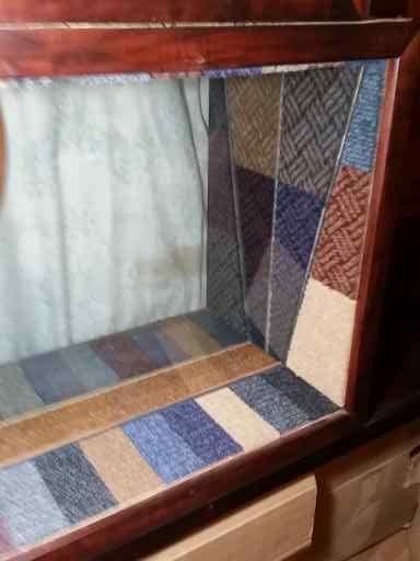Acoustic Sound absorption Panels: portable & strong, constructed of various HF/MF absorption materials, stained & varnished solid wood frame, attractive material covered face. Can be mounted away from wall for improved bass trap response, allows for many flexible ways to affix or hang onto walls, etc.