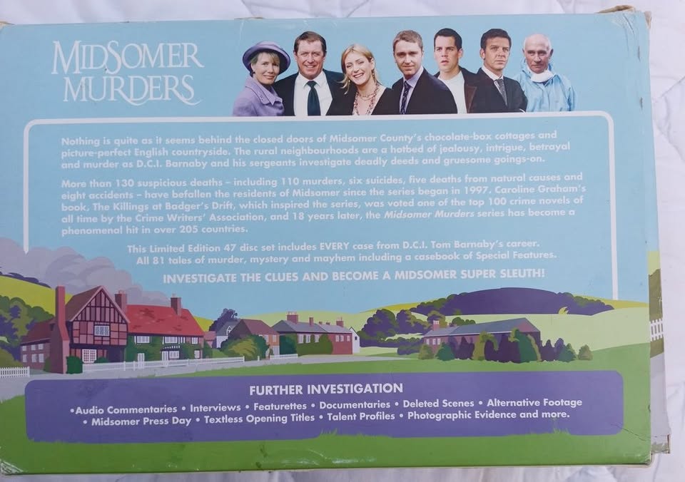 Midsomer Murders Dvd .The Complete Barnaby Collection 47 discs R650 the lot in box Postage : by the courier of your choice Postnet /Courier guy/Express etc...plus R10 for packaging if local = Durban Westville = collect / deliver Contact Toni or steve at Email Cell or or