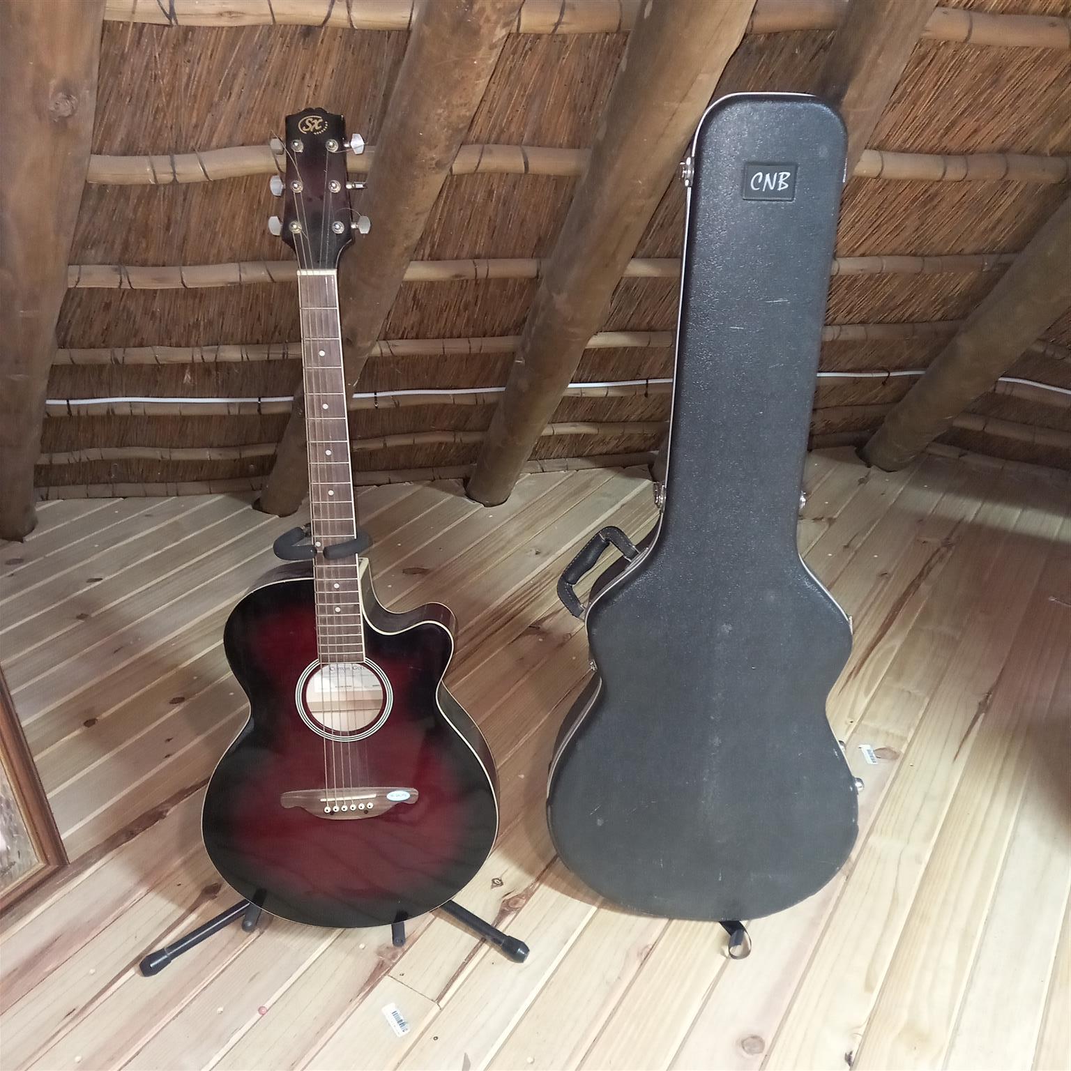Acoustic guitar with a case and a stand. Practically new havn't used it mutch. Selling it because I don't play on it anymore.
