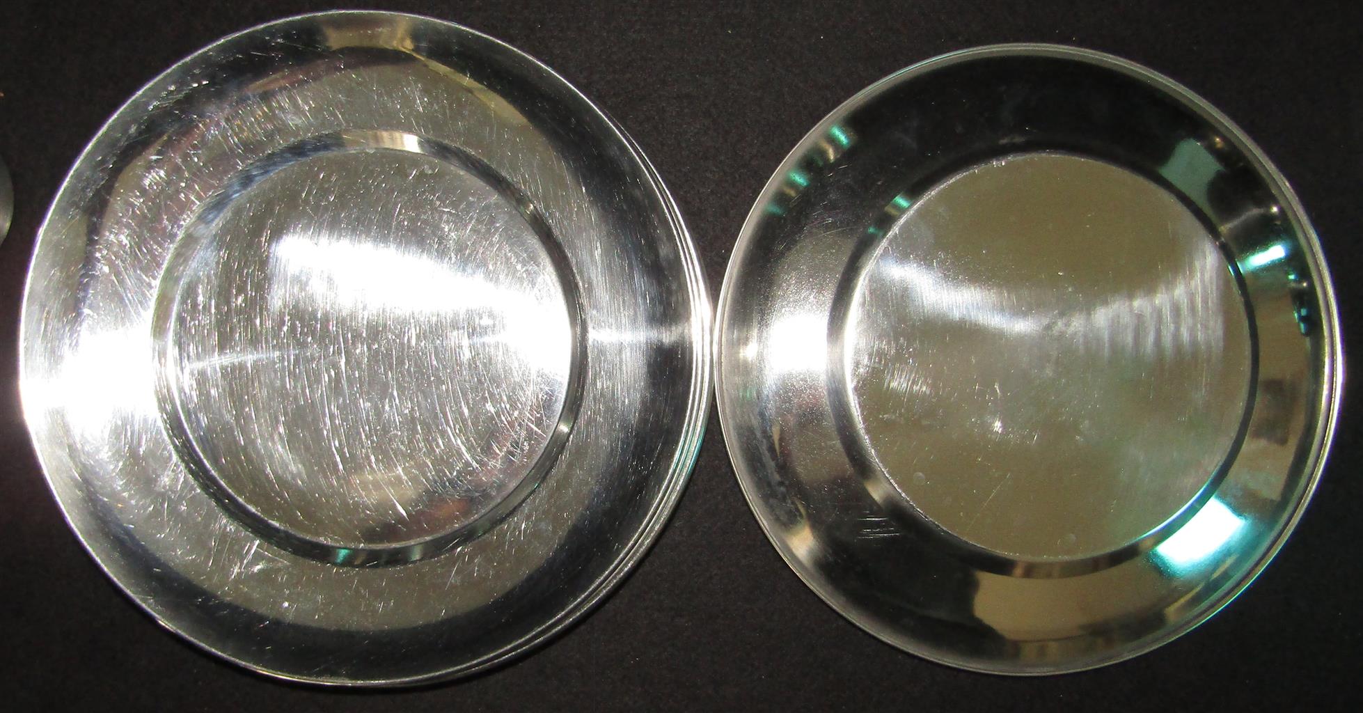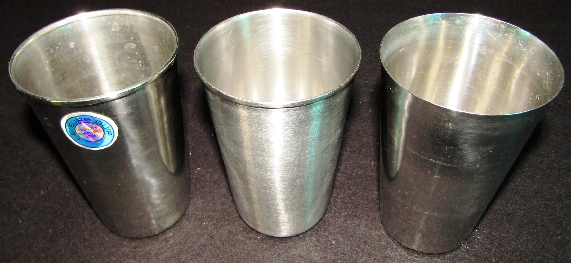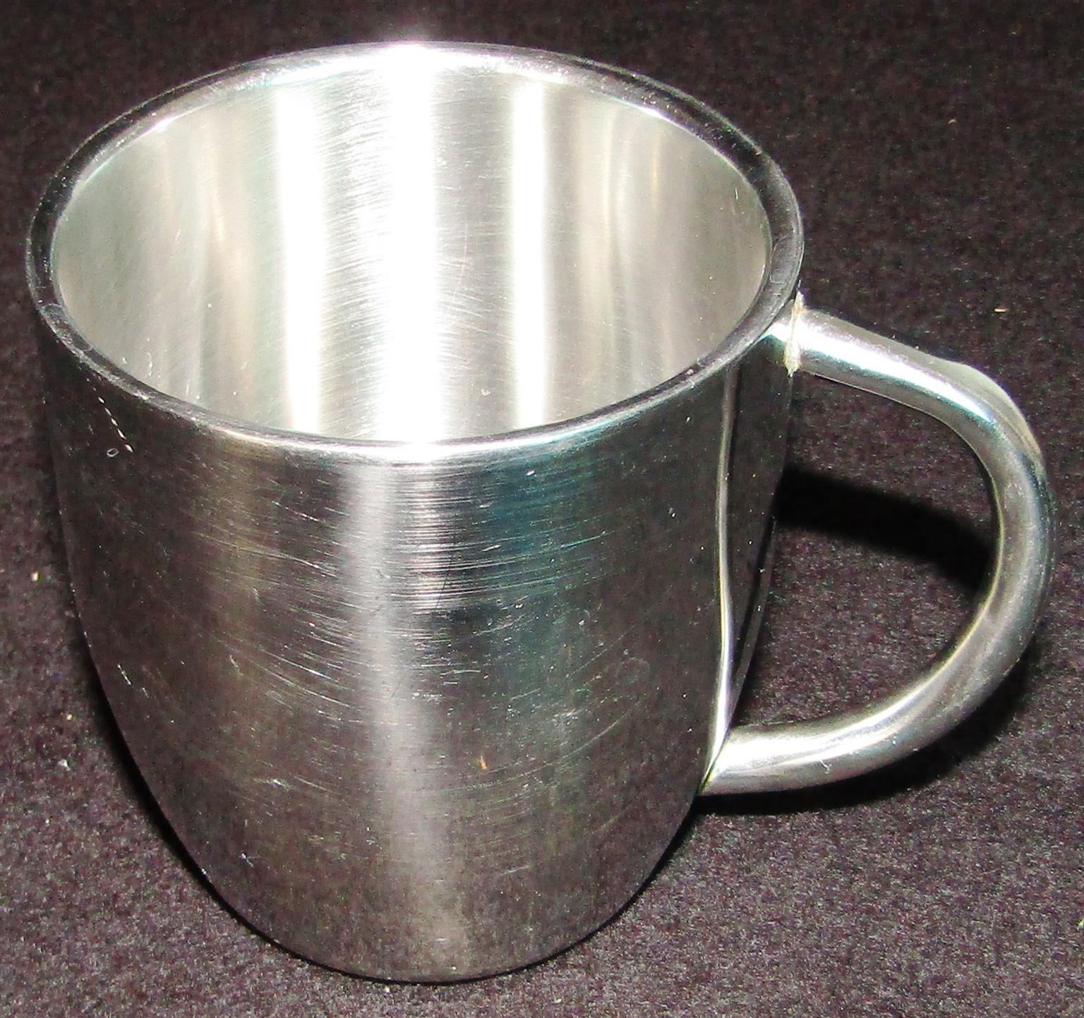 Approximate dimensions: 8 x Plates d=26cm; 4 x Double Skinned Mugs d=94mm; h=95mm; 2 x Puregas Mugs d=74mm; h=82mm; 2 x Spice Shakers d=70mm; h=100mm; 1 x Mug d=81mm; h=90mm; 2 x Drinking Glasses d=73mm; h=115mm; 3 x Drinking Glasses d=80mm; h=122mm. Everything, including the Glasses, is made from Stainless Steel.