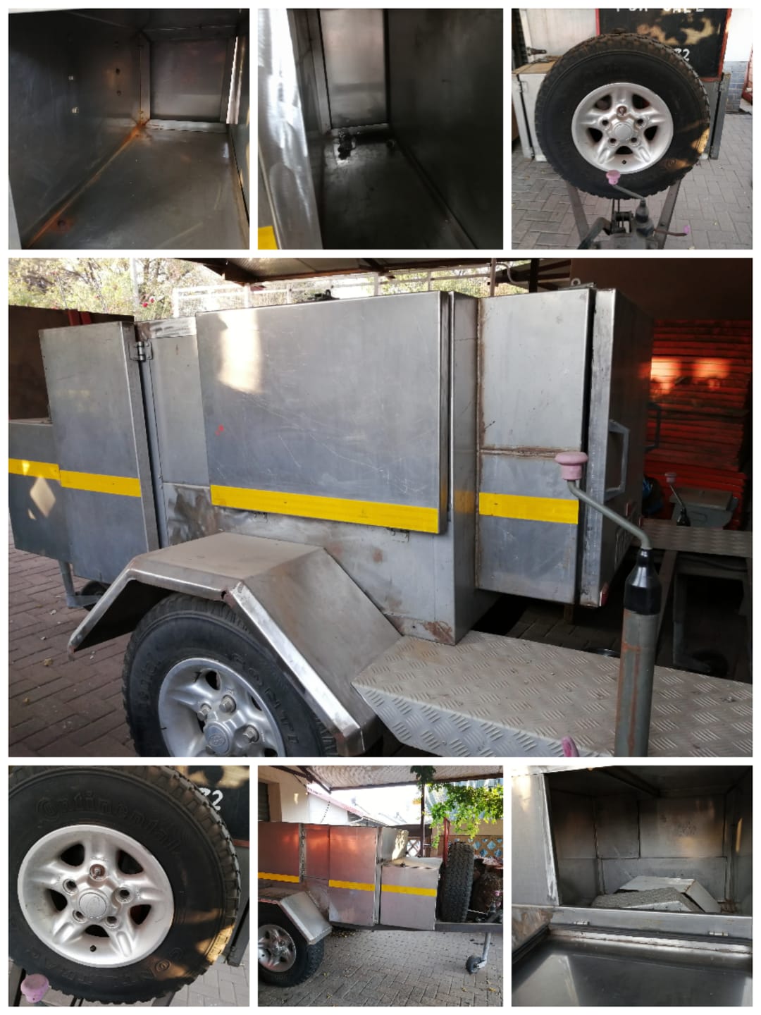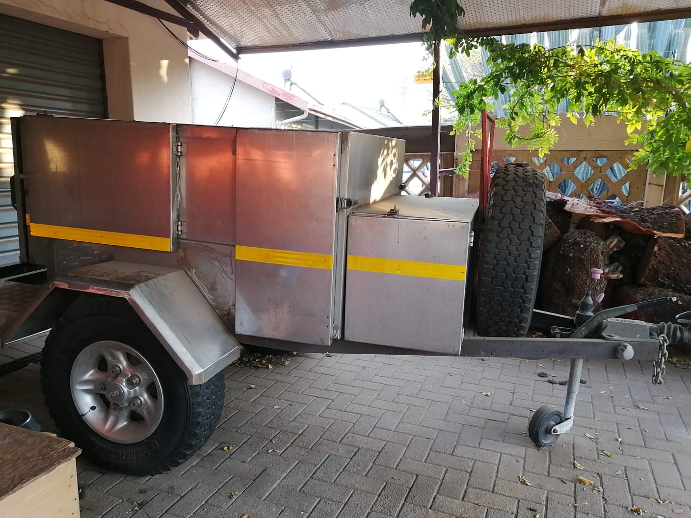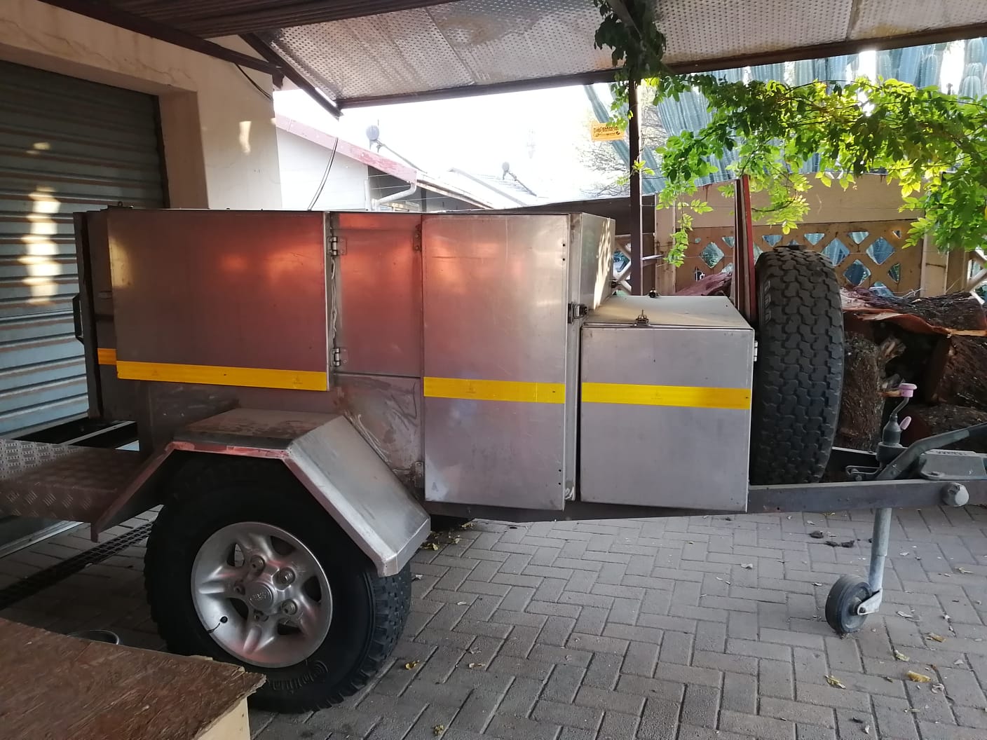 Off road, camping trailer ( boswa) with a three ton axle and mags. Spare included and 2 spare mudguards. Body built from stainless steel. 3 doors per side for easy access. Can fit rooftop tent. Has3 jockey weels for leveling. Is on the road, fully licensed and has papers. Price neg.