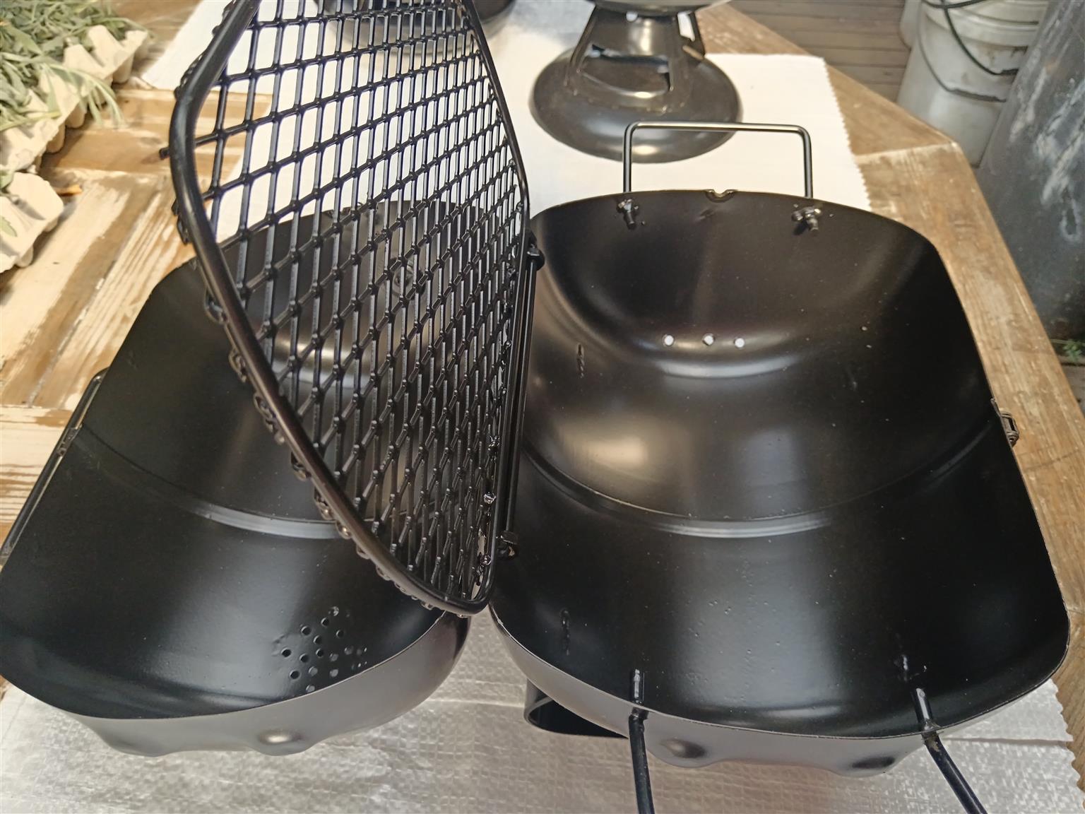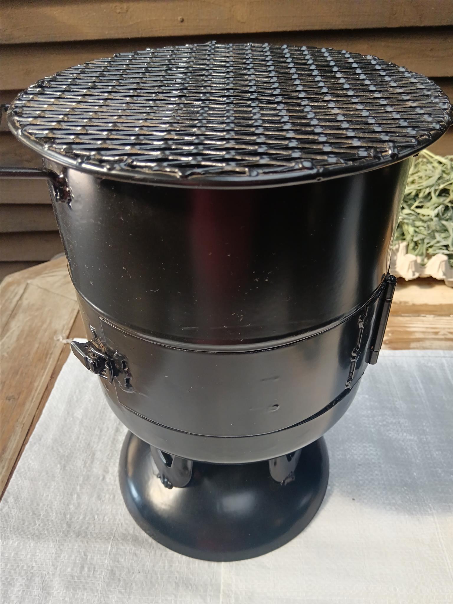 Application: Used as a standard mini braai for 2 & can be used as a Smoker unit with Chimney to release smoke, Latching lid, Swivel abled grid, Sturdy Footing
