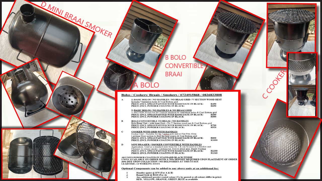 *Bolos / Cookers/ Braais / Smokers / 0724915868view more / 0826823808view more*