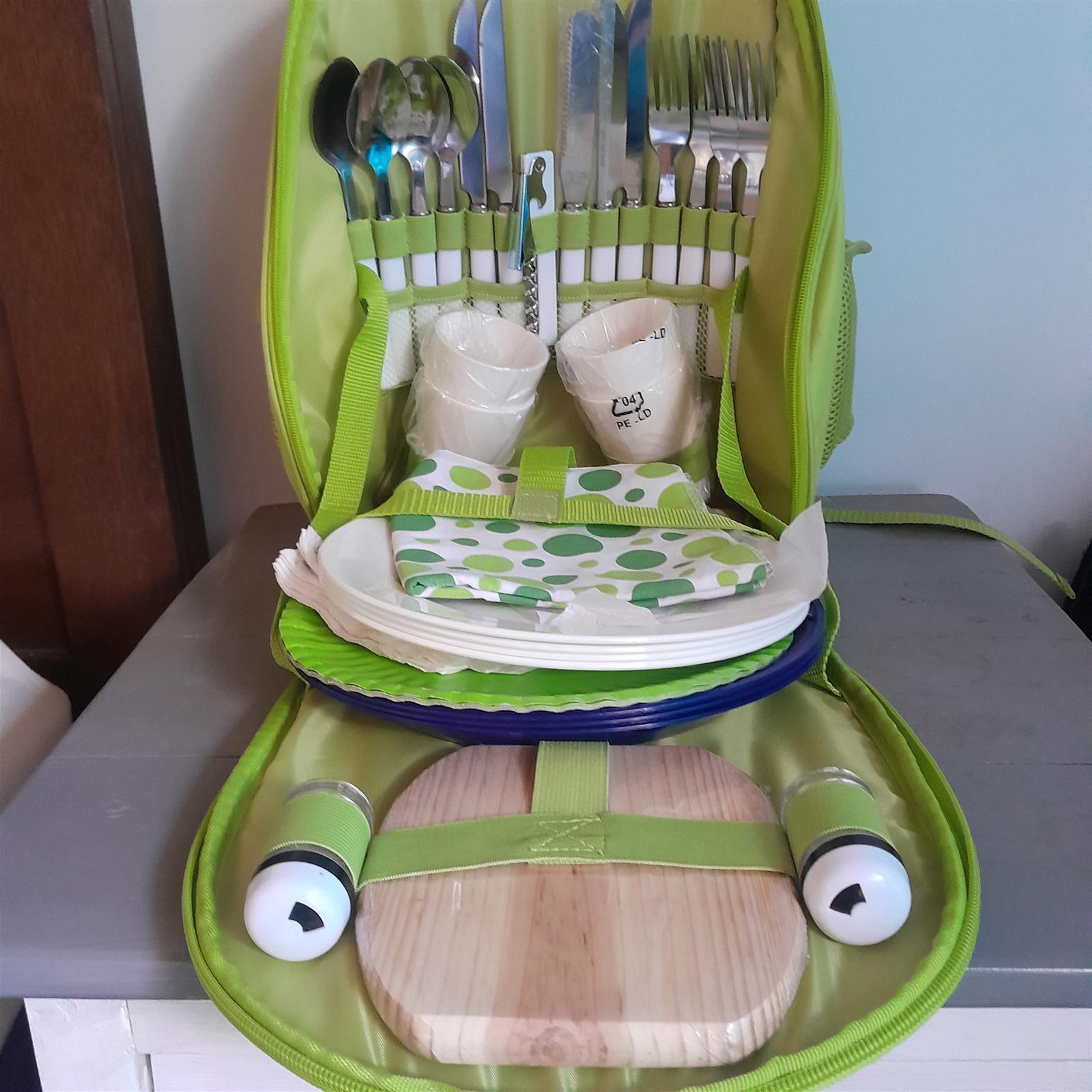 Enjoy a Picnic. Bushbaby rucksack picnic carrier that caters for 4 people. Includes the genuine picnic blankie with plastic on the one side so no leaves or dirt will stick to it and a glass flask so you can have a nice cuppa whilst you relax.