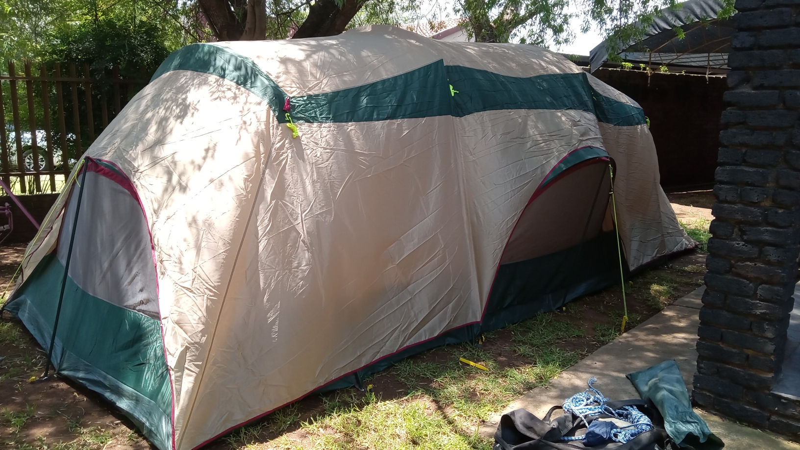 10 sleeper tent, 4 rooms. Three rooms with built in floor. Fourth room perfect for kitchen area. Used only a couple of times