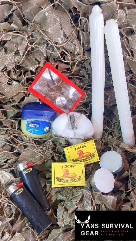 8 x Cotton balls (Dip in Vaseline to make excellent fire starter)