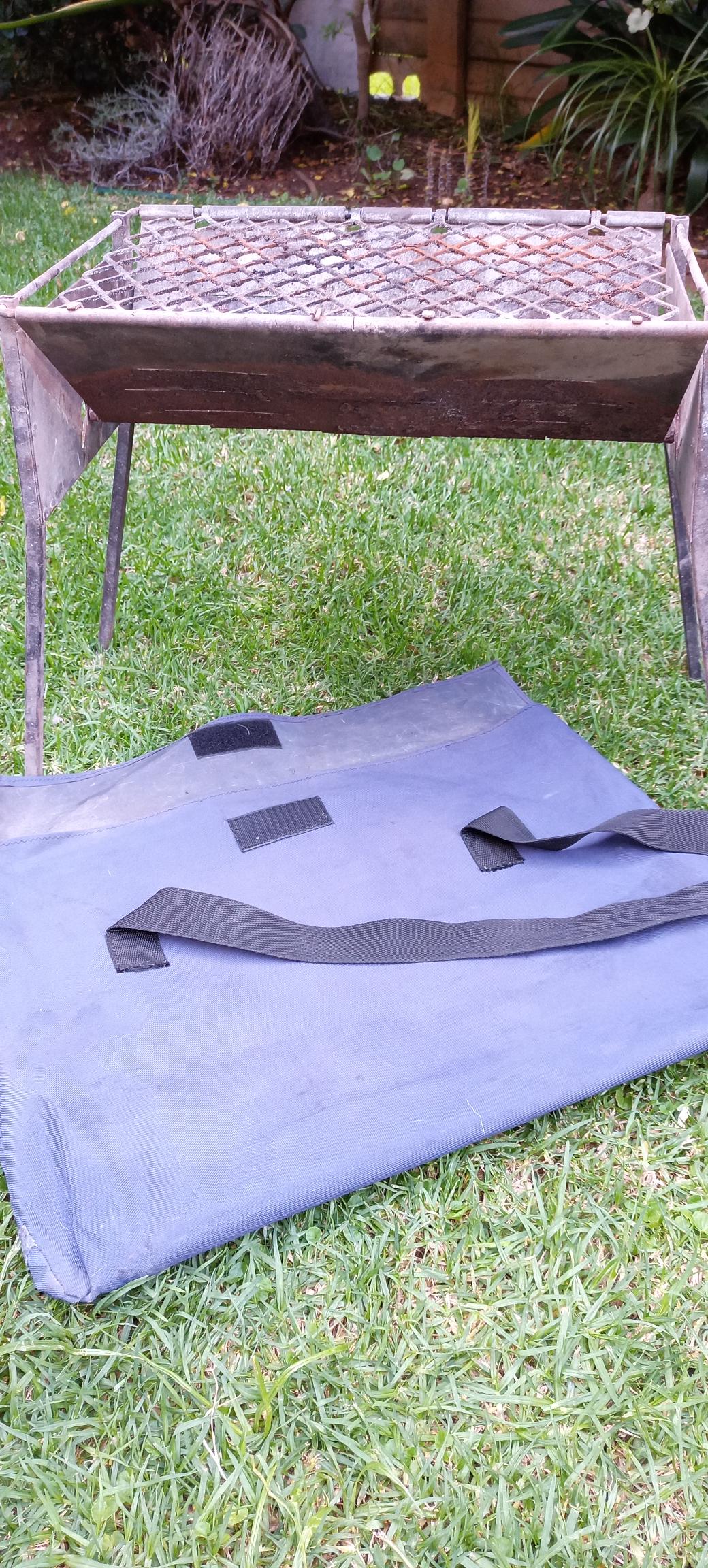 Folding braai with carry bag. Length 60cm High 50 cm 40cm wide. Easy to open or close and save a lot space in carry bag