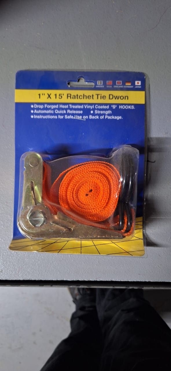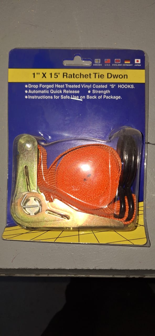 Light Duty Ratchet strap for sale. 4.5 meter strap, sturdy enough for most household and camping applications.