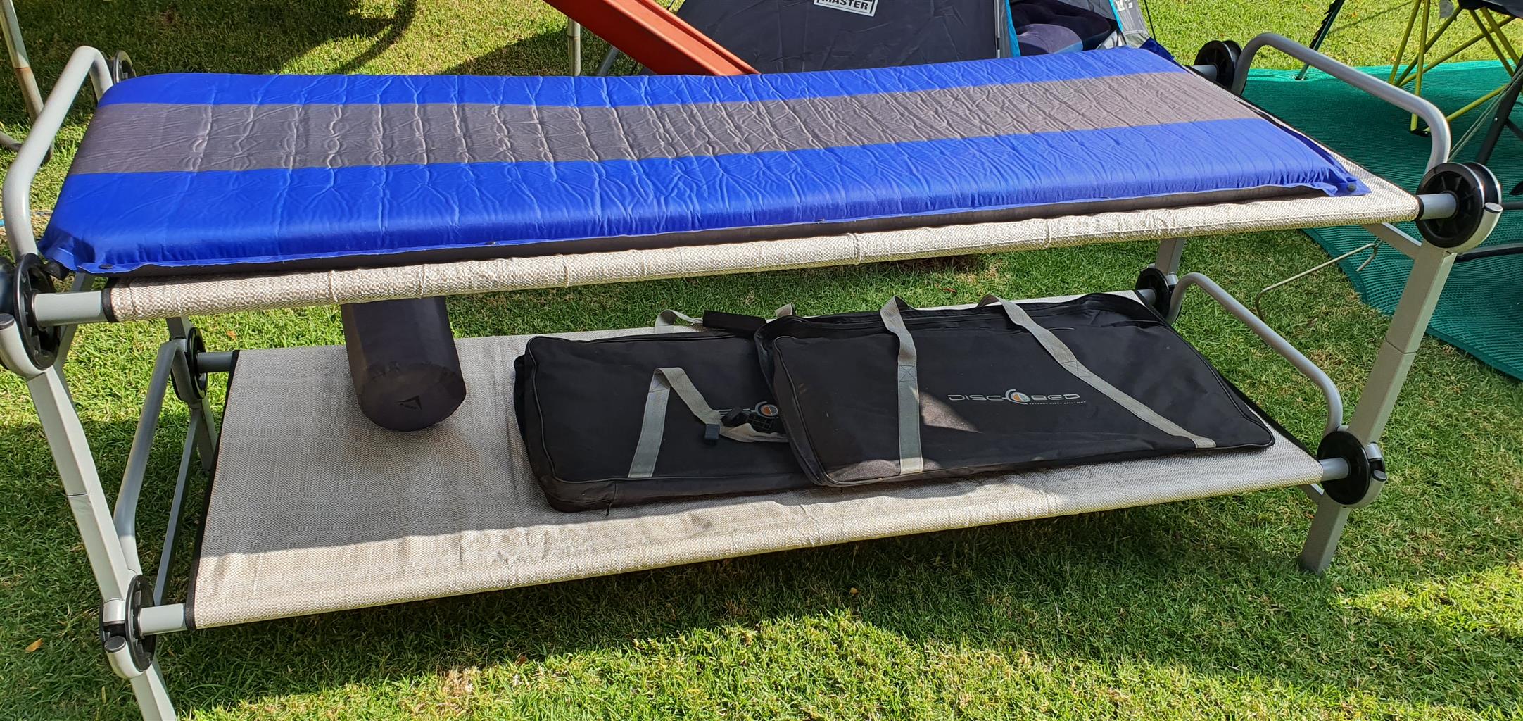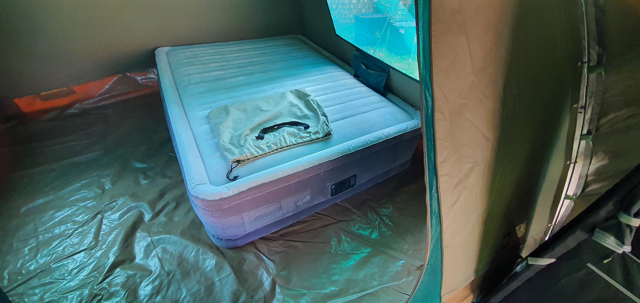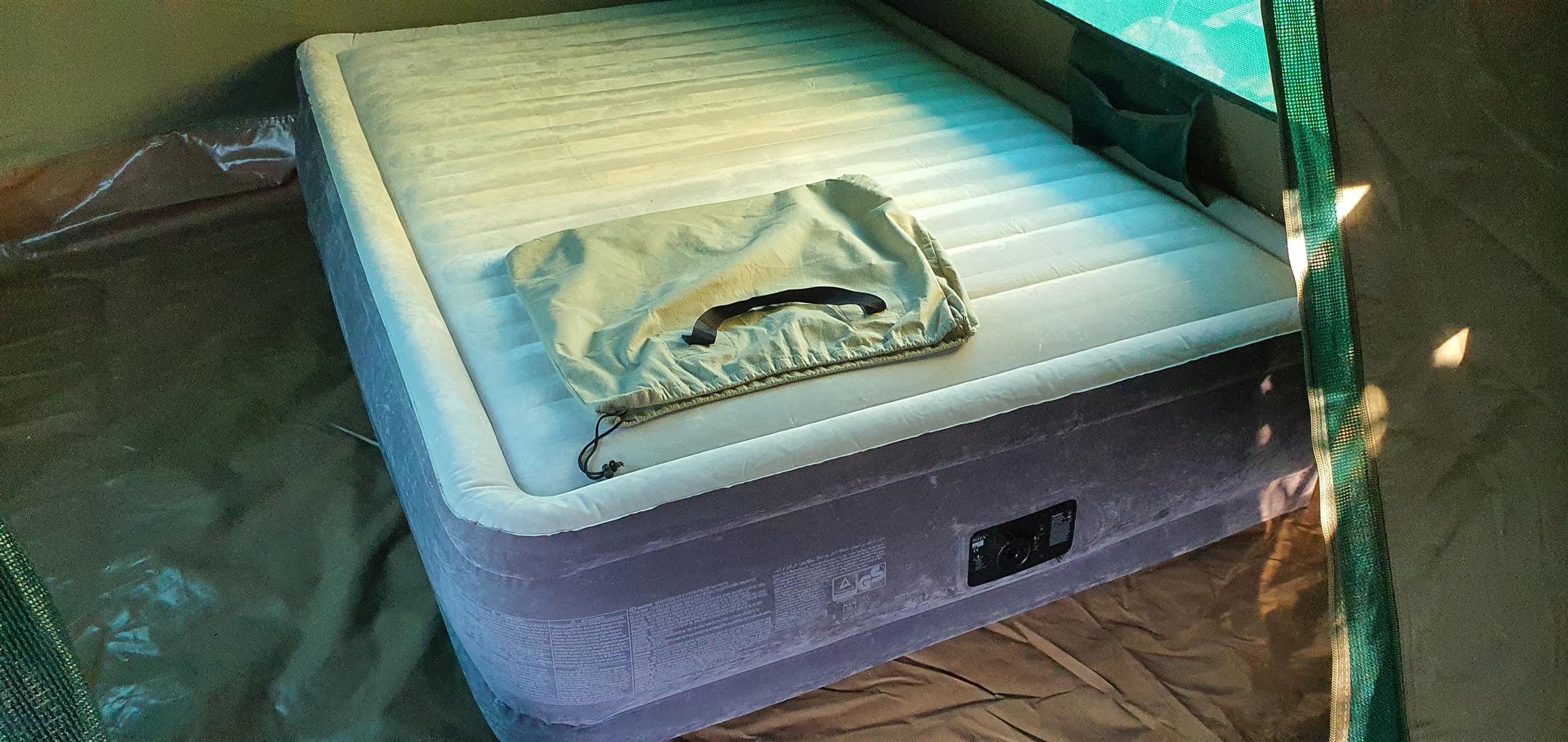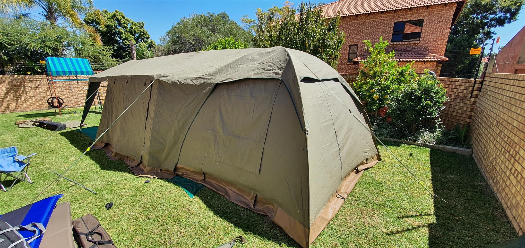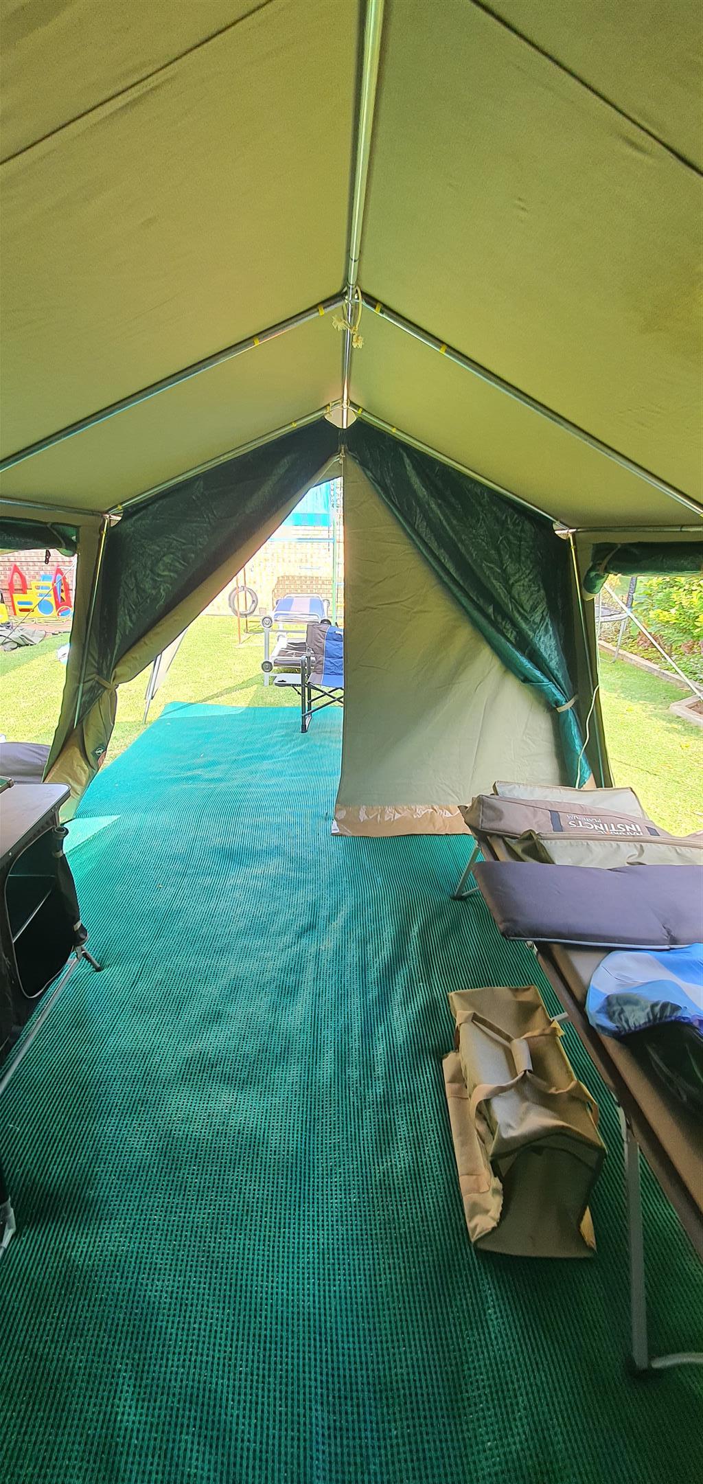 One Bushtech 3mx3m Dome in very good condition, a Campmor Safari bush combo, Camp master camp dome 200 kids tent, Intek Queensize inflatable bed, Heavy-duty strecher and folding mattress, one Disco bed stacker, inflatable mattress. Natural instincts 4 tier cubart, 4 shelf folding cubard, chairs, ropes, storm cables, tent pegs, flexible hose, electrical cable and other accessories. More pictures are available on request.