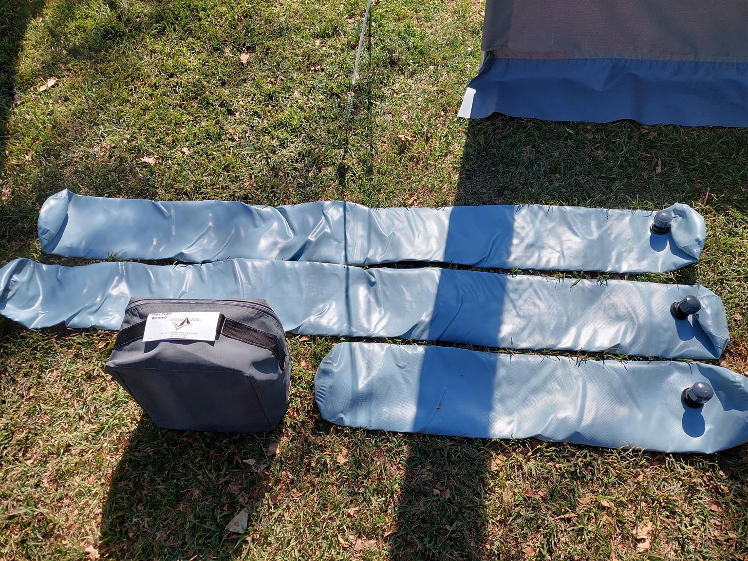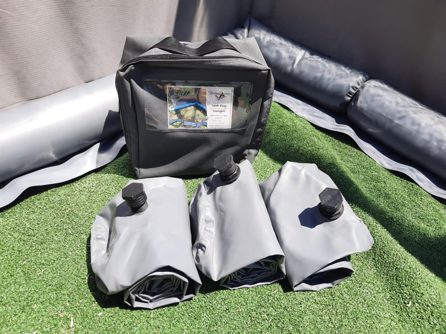 Tent Flap Weights.R1485 per set, Set consists of 2x2 meter and 1x1 meter =5 meter in total length + canvas carry bag. Just fill with water lay down on your tent flaps .Stop Creepy crawlies, snakes, monkeys ,wind and rain water coming into your tent . This product can also be used on outdoor blinds on your patio to keep the rain and wind out . Free delivery in Pretoria We can also courier any where in South Africa. . You can contact me at info@campingsupplies.co.zaview email...