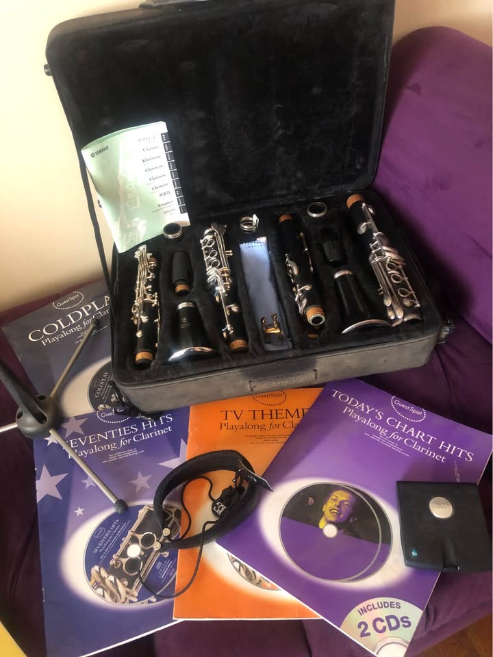 I have two music stands. For the 35 k they get a new Yamaha Bb flat and an A clarinet, reed box, auto tuner, music stand with lights, all the play along cd's with sheet music, a clarinet stand and a neck strap.