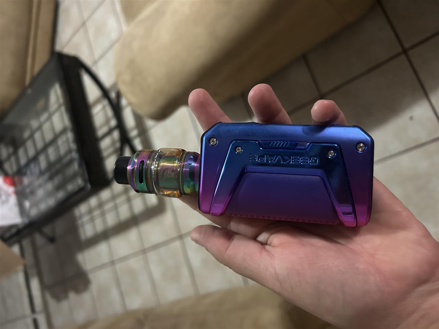 Geekvape rainbow color for sale. I decided to stop vaping because of personal reasons. Vape is in very good condition and comes with the tank and batteries