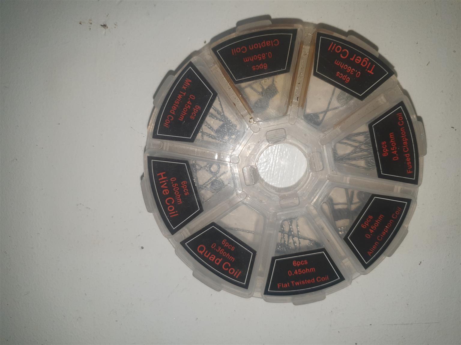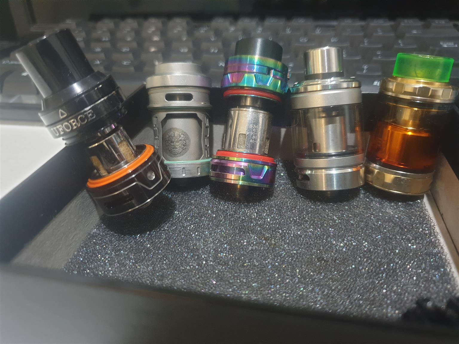 Full vandy vape box mod dripper X5 spare heads X2 battery charger X1 battery Full box dripper coils