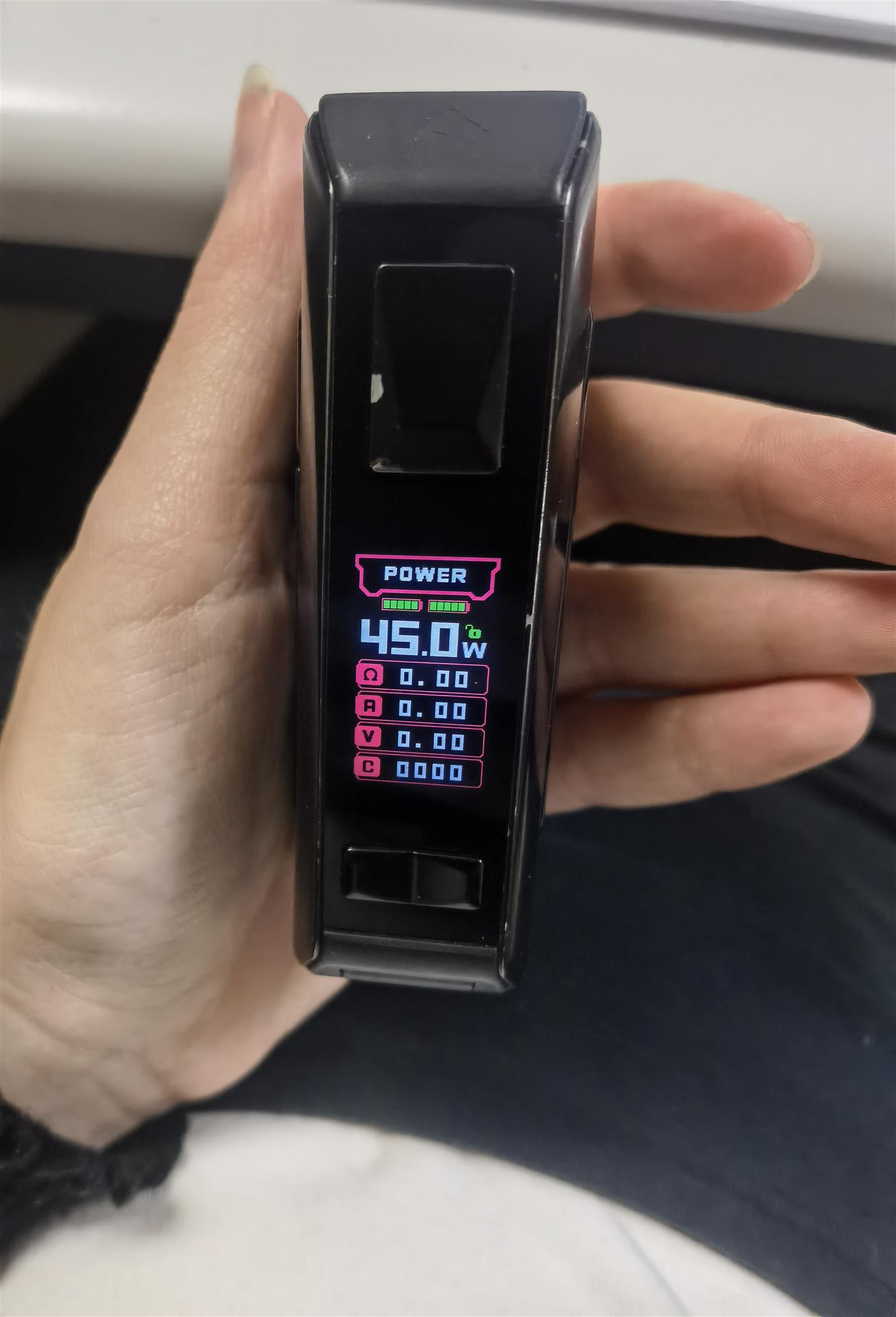 The Vaporesso has a discoulerd fire button and a small paint chip at the bottom of the vape.