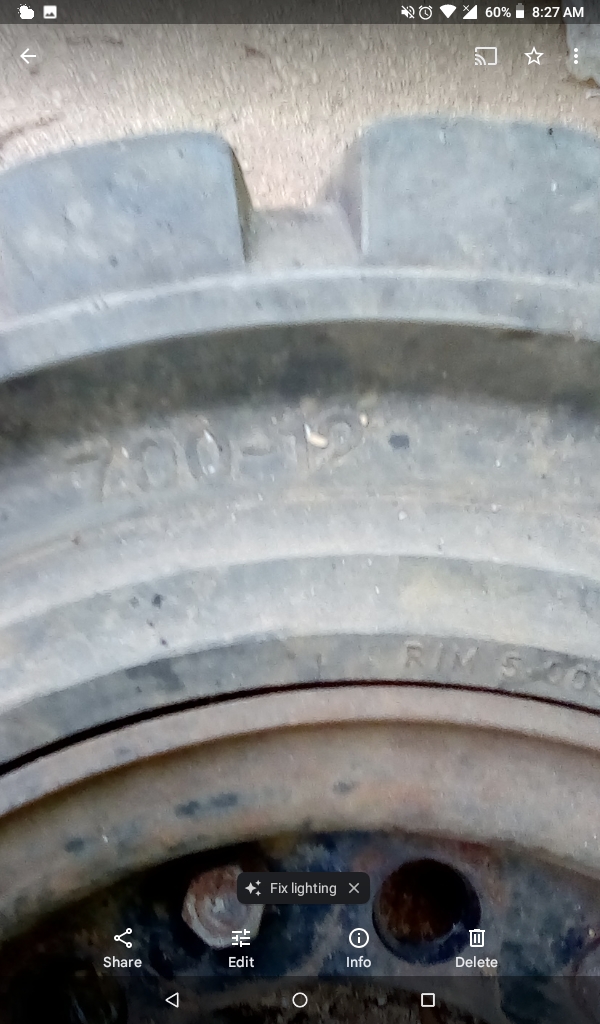 Good front forklift wheels with tyres on 5yre is 700-12. Inside hole diameter 170....price of R3500 slightly negotiable contact me via WhatsApp