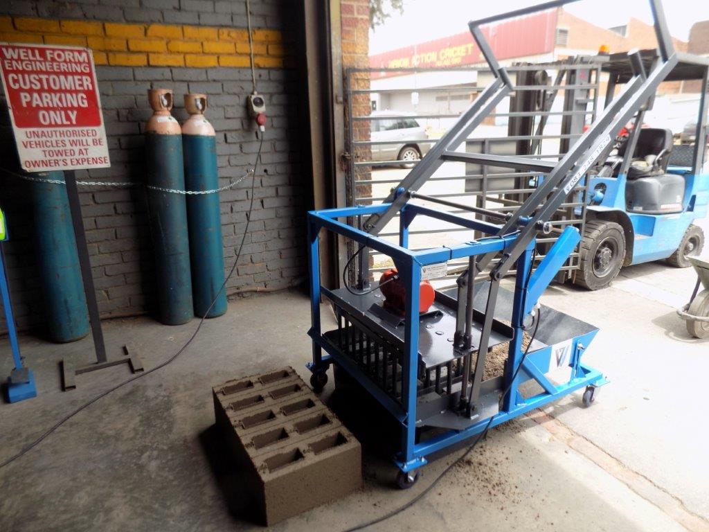 Well Form Engineering manufacture various Block and Brick Making Machines. W1 PLUS MANUAL MOBILE/EGG LAYER MACHINE WITH 5DROP 6INCH/M140 HOLLOW BLOCK MOULD. OTHER INTERCHANGEABLE MOULDS CAN BE ADDED AT ADDITIONAL COSTS - 4INCH & 9INCH HOLLOW BLOCK MOULDS; STOCK BRICK 16DROP; MAXI BRICK 10DROP; INTERLOCK & RECTANGULAR/BEVEL PAVER MOULDS 10DROP; RETAINING BLOCK; DECKING BLOCK MOULDS