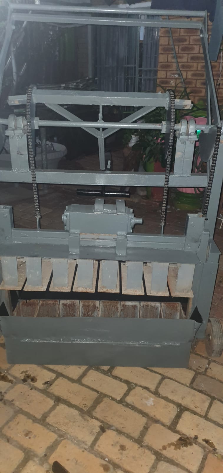 PERFECT MONEY MAKER- RDP MAXI BRICK MACHINE WHICH MAKES 8 BRICKS AT A TIME (EGGLAYER). EASY TO OPERATE ON WHEELS, HAND OPERATED BY 2 PEOPLE AND CAN MAKE OVER 1000 MAXI BRICKS PER DAY. VERY PROFITABLE WHERE DEMAND IS GREAT FOR LOW COST HOUSING ETC . NOW PRICE DROPPED TO ONLY R12000 . BASED IN LENASIA. CALL 083 458 9293view more WHATSAPP 083 458 9293view more.