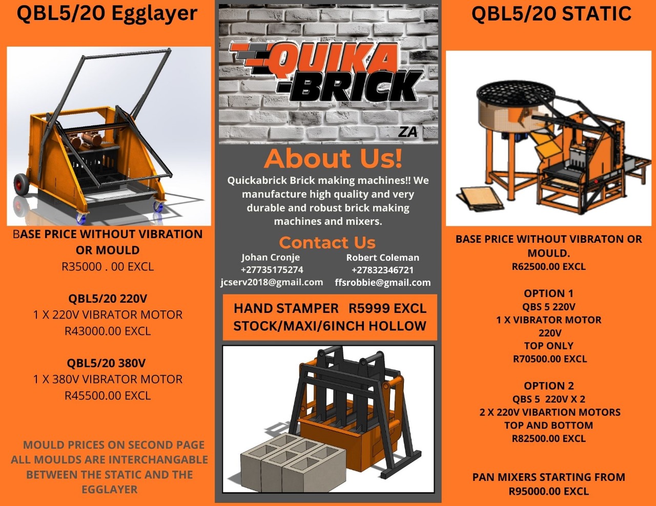 Quickabrick Brick making machines!! We manufacture high quality and very durable and robust brick making machines and mixers. All can be flatpacked to transport all over Africa!