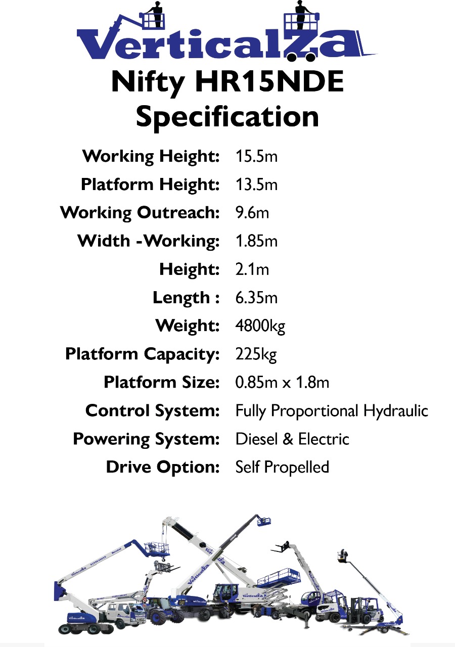 VerticalZA Lifting Equipment Nifty HR15NDE- 15m ARTICULATING Cherry Picker - Buy or Hire