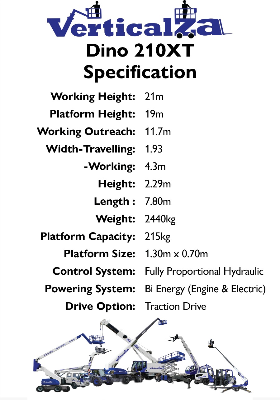. VerticalSA Lifting Equipment Dino 210 - 21m, Portable Trailer Mounted Cherry Picker
