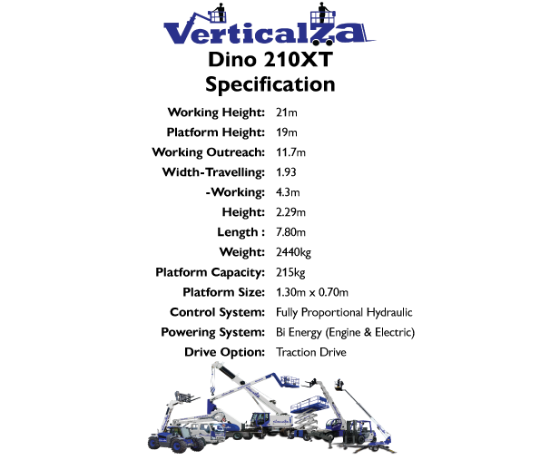 VerticalZA Lifting Equipment Dino 210 - 21m, Portable Trailer Mounted Cherry Picker