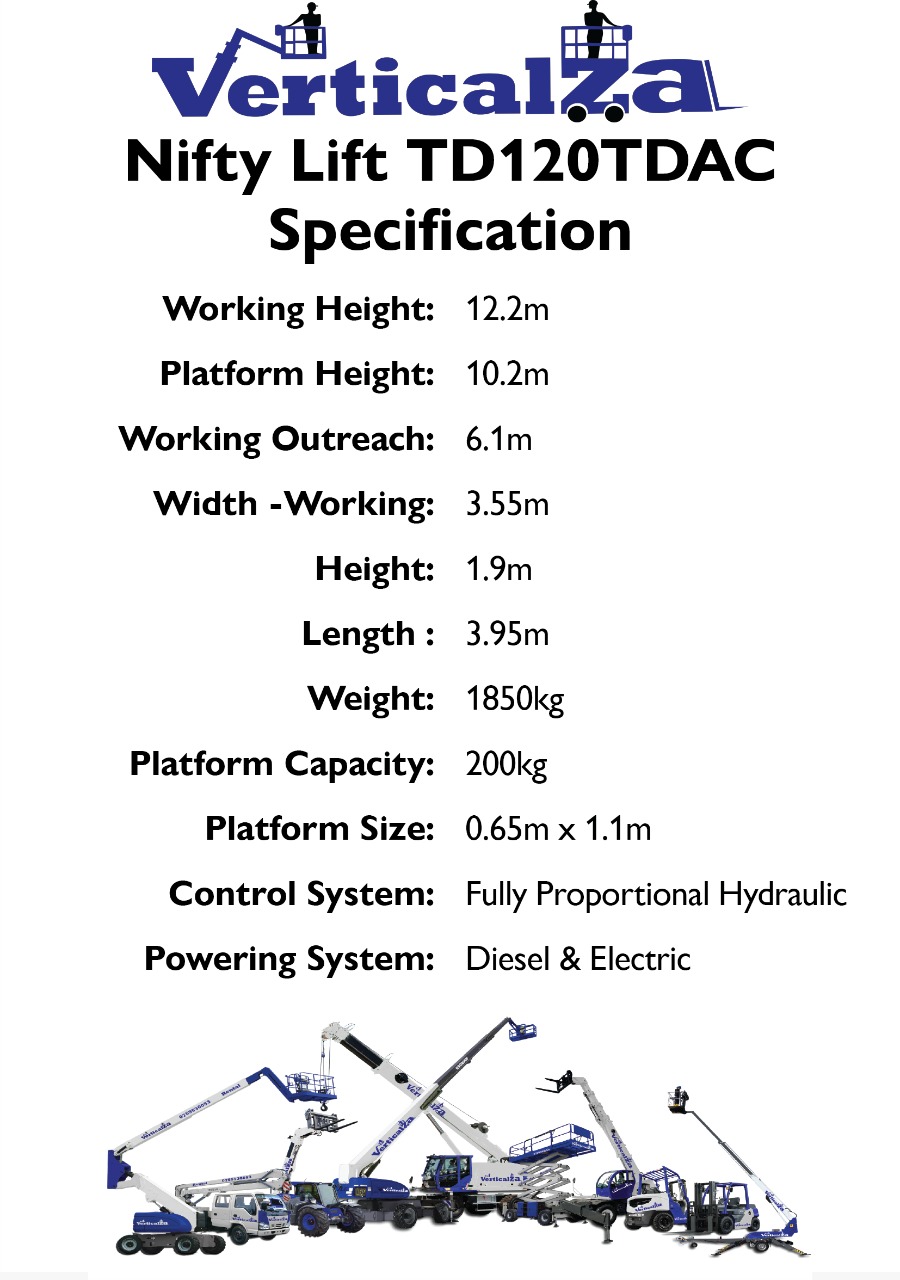 VerticalZA Lifting Equipment Nifty TD120TDAC - 12m Tracked Cherry Picker - Buy or Hire