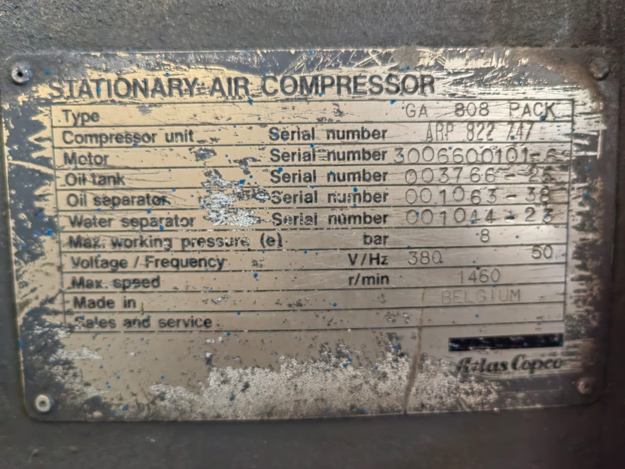 Pressure: 8 bar