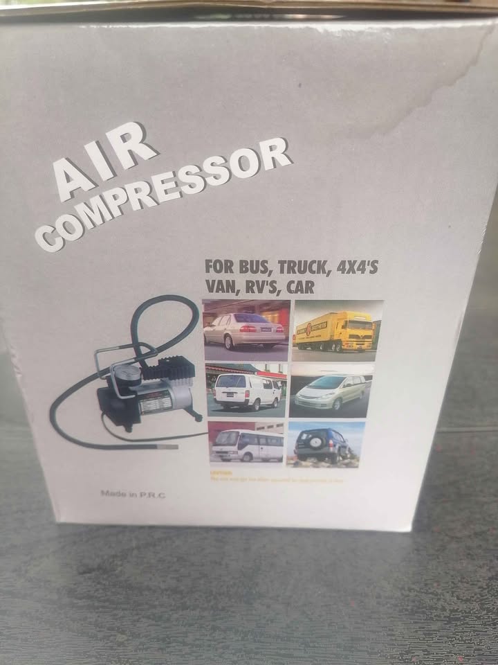 WizeSolar product offering : DC 12V air compressor Ideal for traveling and emergency support Ideal for air brushing Output volume 35L/min Voltage 12V Max amp 10A Max pressure 150 PSI Lightweight, can take it anyware Ideal for inflating, balls, mattresses, balloons, air brushing, cat tyres etc... Contact or what's app me on Please note serious Intrested parties welcome only