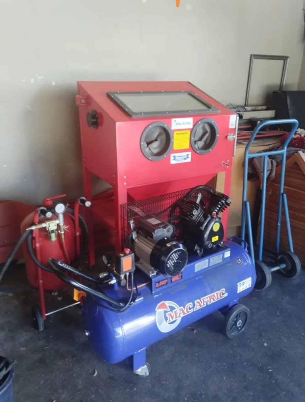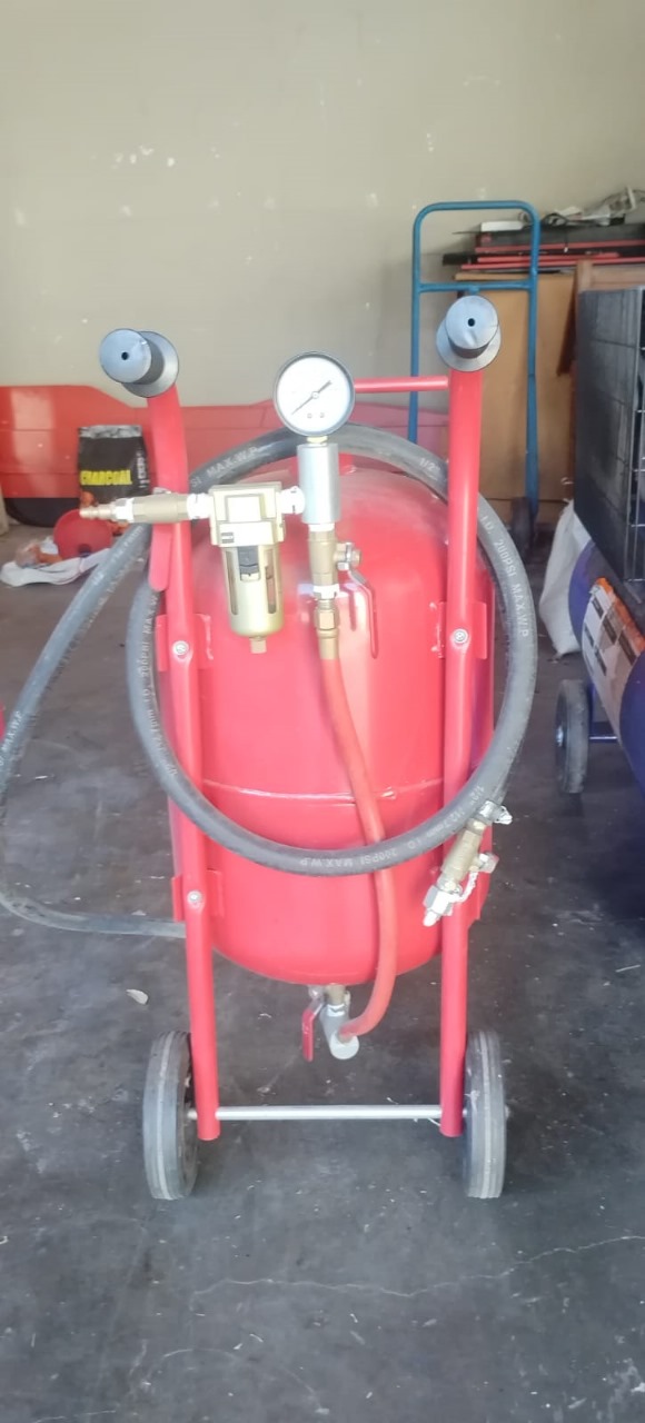 Compressor, Sandblasting pot and stand plus trolley. More details: