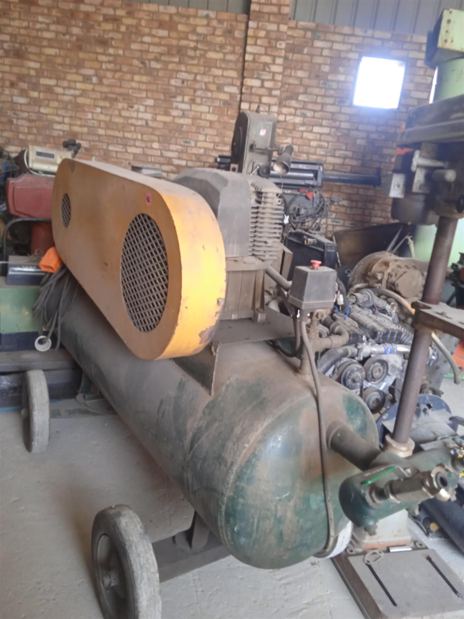 Compressor on wheels, approximately 250 liters. Selling at R8500. Please get in touch with us for more information.