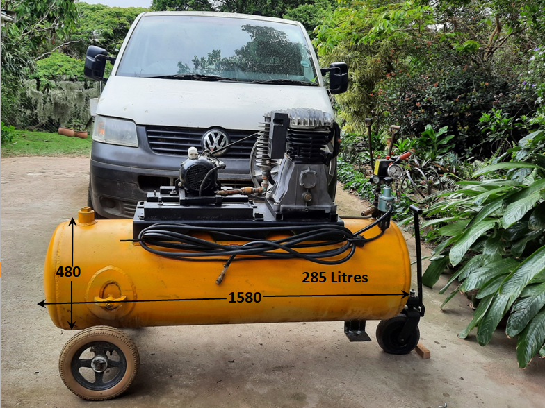 Air compressor. 3hp motor. 90l per min. 285l tank. Air tools included.