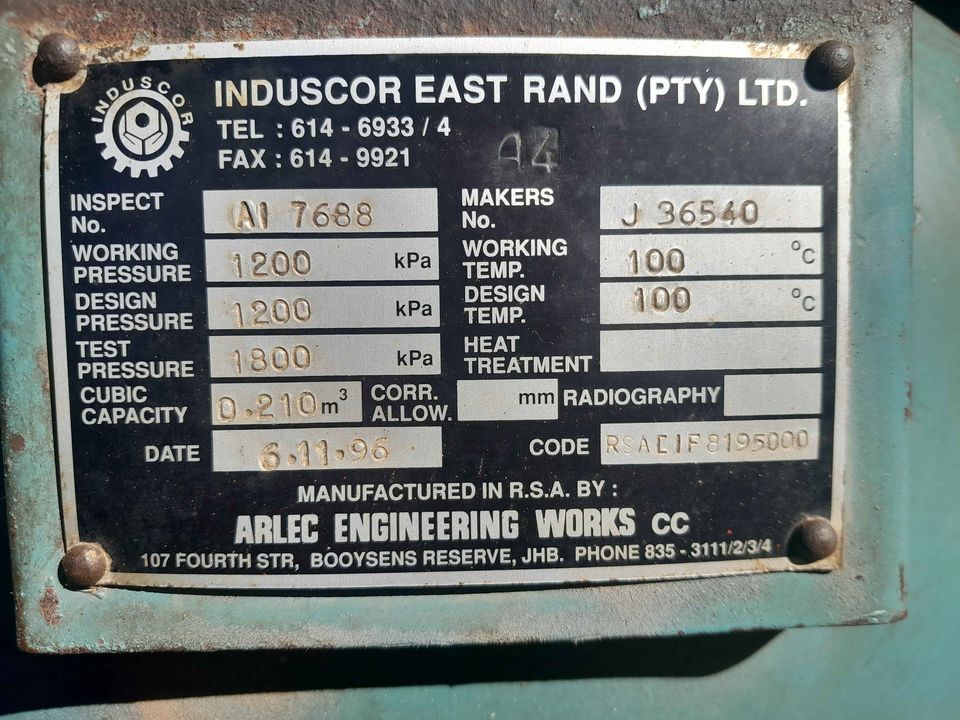 5.5 Kw 7.5 Hp compressor working pressure 1200kPa capacity 0.210 m^3 380V new R 49000 asking R18 000