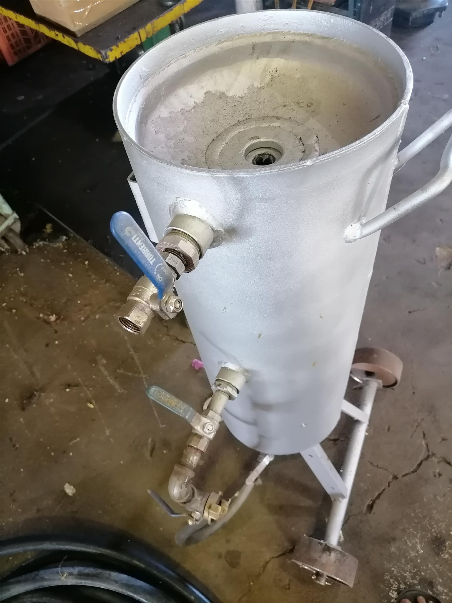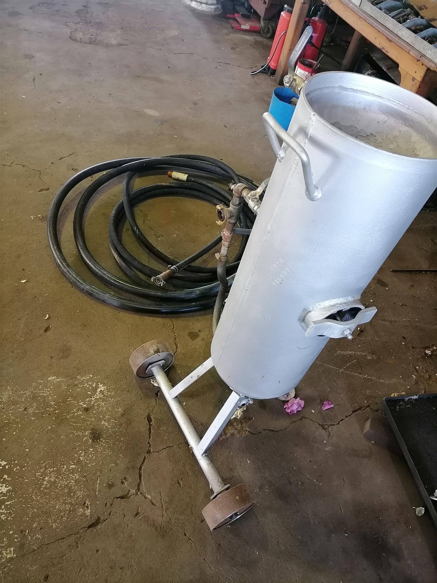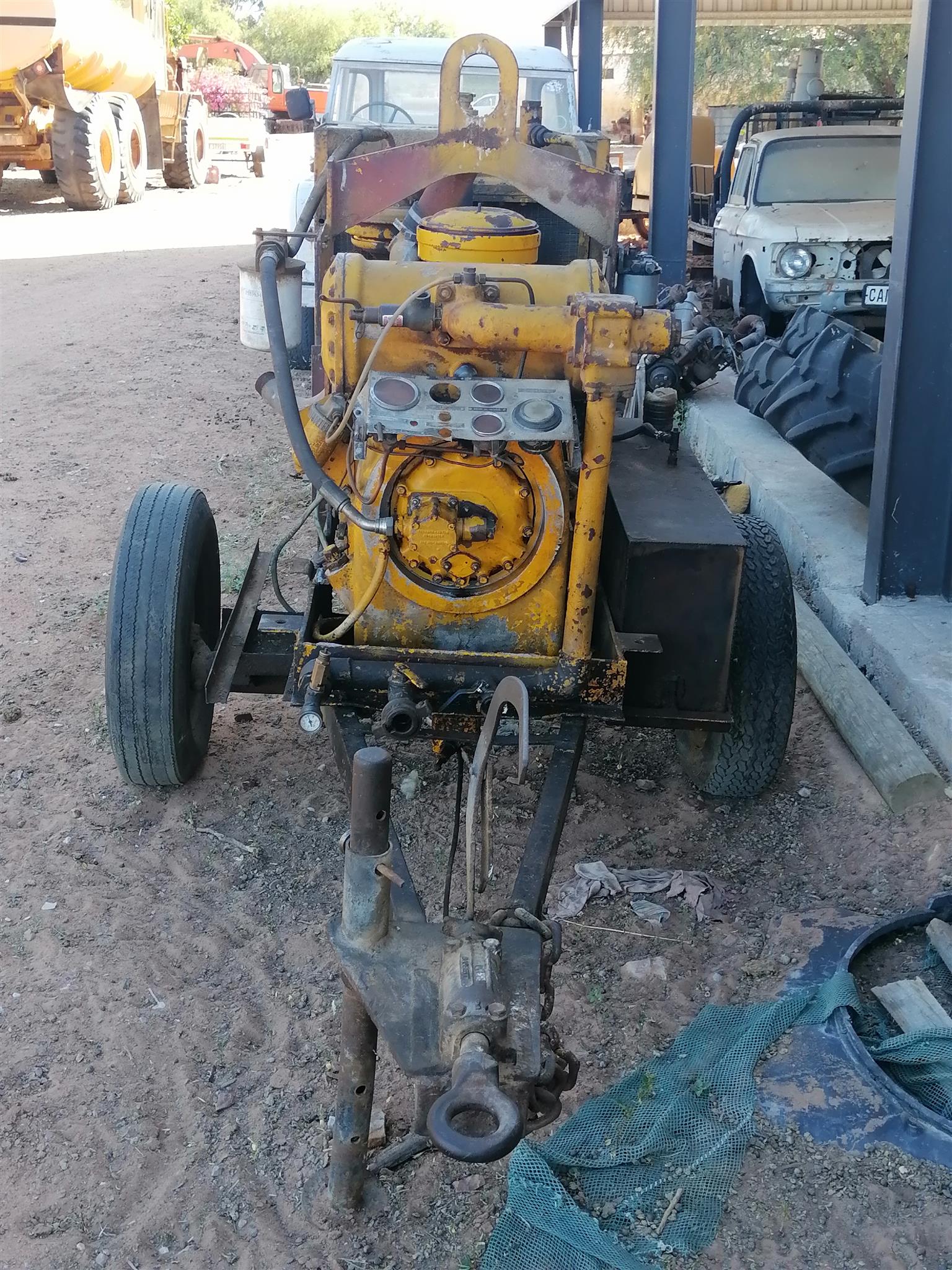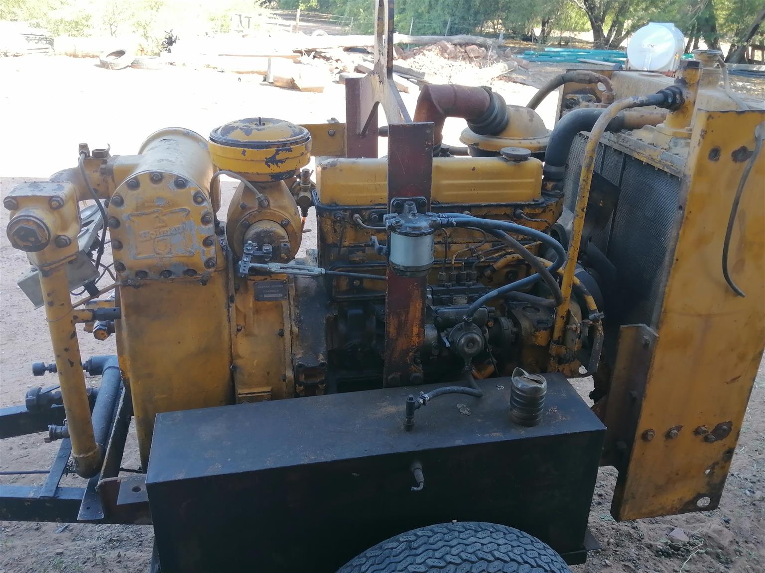 An old Holman Howden Compressor with a 4 cylinder Ford engine, it has 150 CFM capacity and 5 Bar pressure. Included with the compressor is a sandblaster complete with hoses and nozzle.
