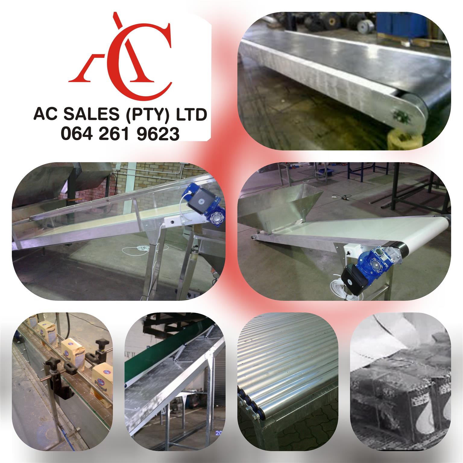 Belt conveyors, incline or decline, various belt option, widths and thicknesses. We manufacture anything form food grade belt to 10mm thick rubber belts. Bodies of the machines designed according to specification and applications. Manufactured in mild steel and hot dipped galvanised, or from stainless in steel in various grades including food grade 316. Units available in 220 volt or 380 volt systems, with or without speed control units. We also rebuild existing conveyor systems