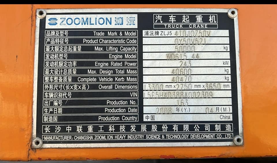 2008 Zoomlion QY50 Crane, 50 Ton Lifting capacity. Selling with Load testing Certification. Contact: Johann Mobile or WhatsApp: +27(0) 71 141 3695 Email Midrand, Gauteng, SA