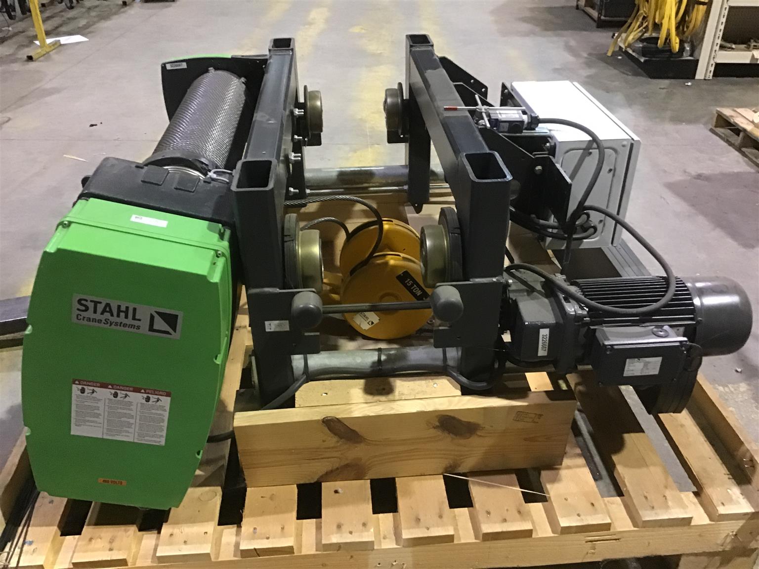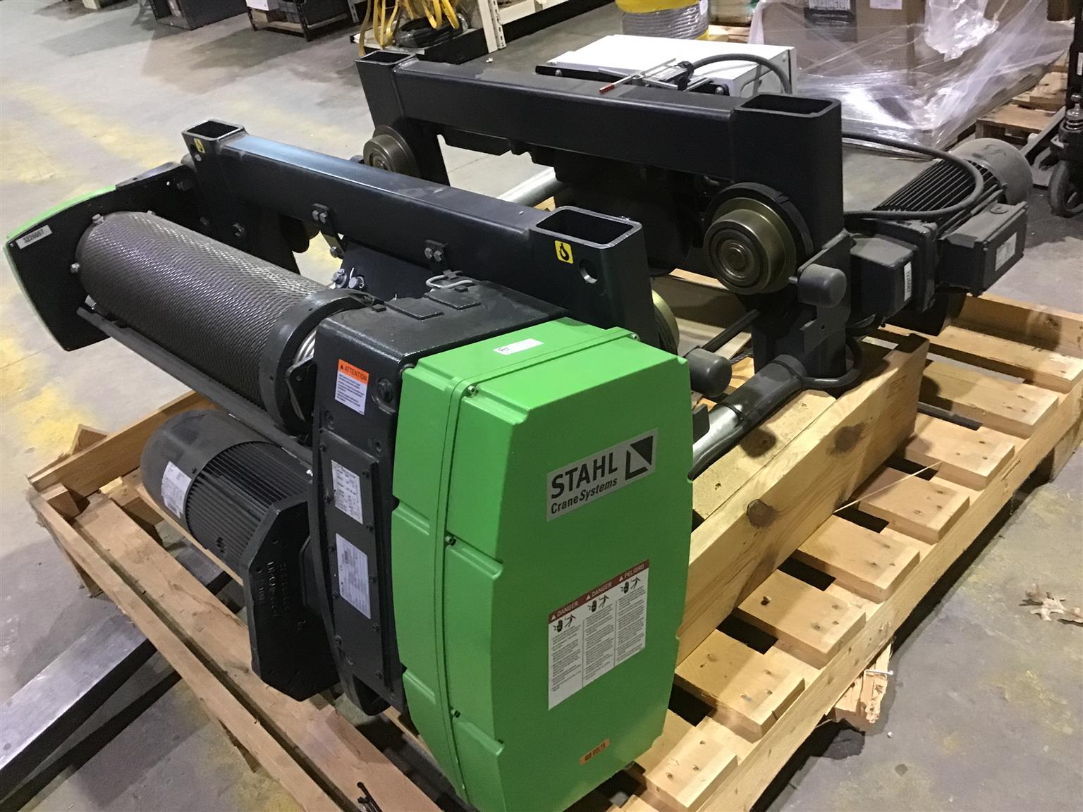 Also have 5T STAHL hoists, used for no more than 150hrs ,these are 10m lifting height 4 fall underslung. All works 100% and will be tested .