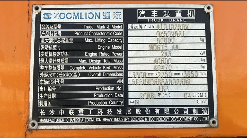 2008 Zoomlion QY50 Crane, 50 Ton Mobile Crane . Selling with Load Testing Certification . Contact: Johann Mobile or WhatsApp on : +27(0) 71 141 3695 Enail : Midrand , Gauteng, SA