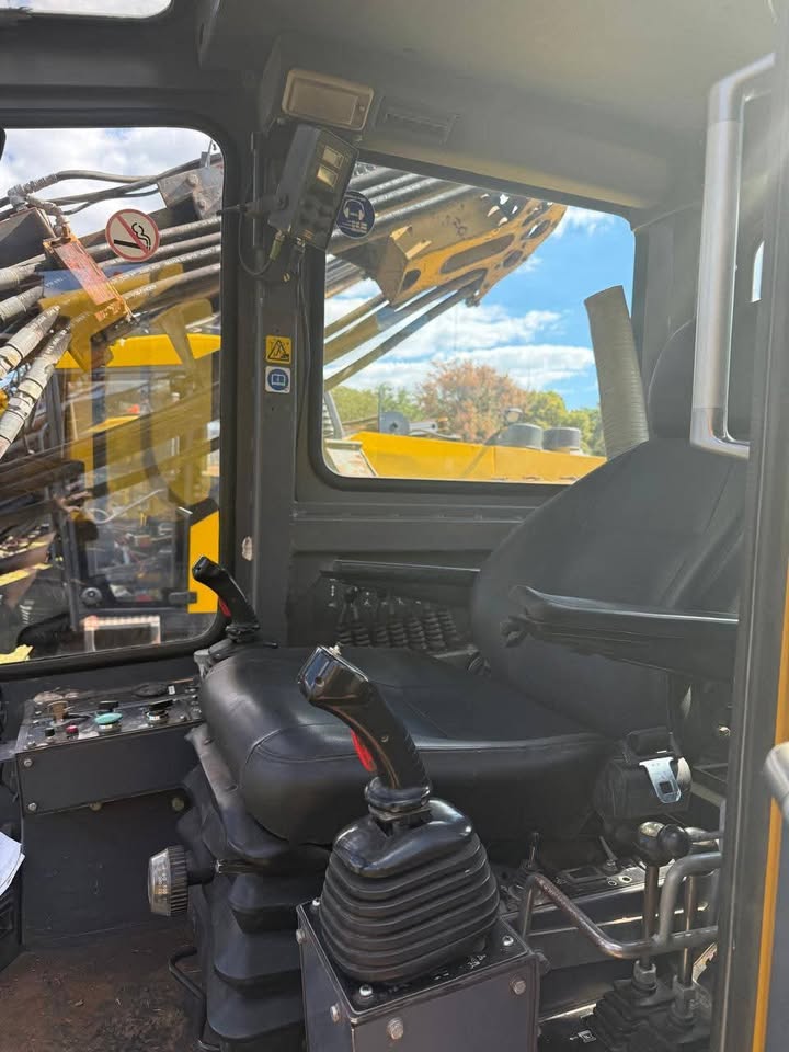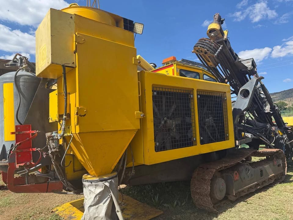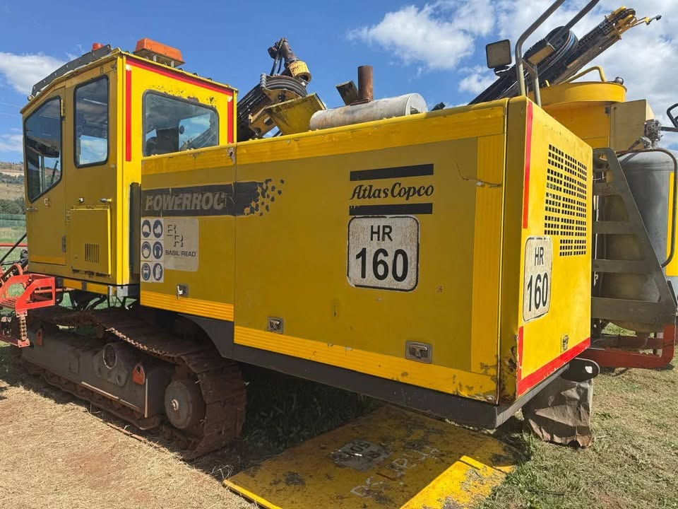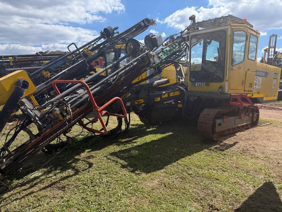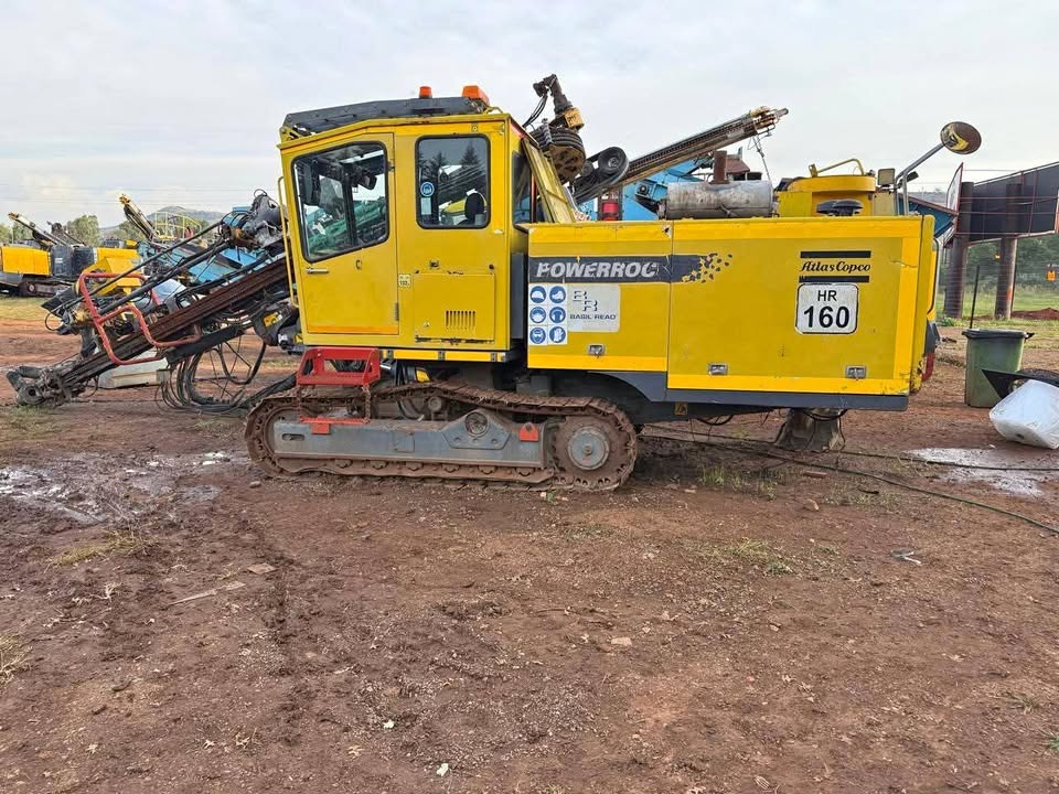 The Atlas Copco PowerROC T45 is a robust and efficient surface drill rig designed for quarrying and large-scale construction projects. It offers a combination of power, reliability, and operator-friendly features, making it suitable for various drilling applications. 🔧 Key Specifications Drilling Method: Tophammer Hole Diameter: 76 mm – 127 mm (3"–5") Maximum Hole Depth: 25 meters (82 feet) Engine Power: 194 kW Air Compressor Capacity: 175 l/s (370 cfm) Rock Drill: RD 22S hydraulic rock drill Rod Handling System: Three-rod carousel with 20-foot lead rod; total depth capacity up to 54 feet Single-Pass Drilling Capability: 18 feet Cabin: Yes Fuel Tank Capacity: 400 liters Hydraulic Oil Tank: 200 liters Electrical System: 24 V with 2 x 12 V, 120 Ah batteries Year : 2016 12000 hours R1mil ex vat