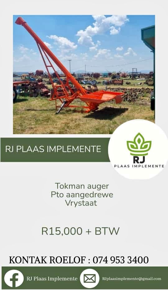 Tokman Auger PTO Aangedrewe Vrystaat R15 000 + BTW KONTAK ROELOF :
