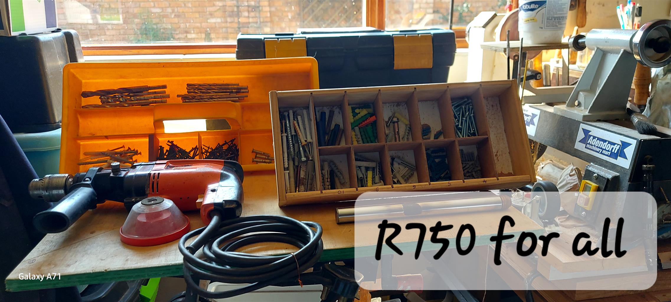 Drill concrete and normal 2 speed good condition + box + tray full of concrete dril and a tray with plastic plug ,very good buy